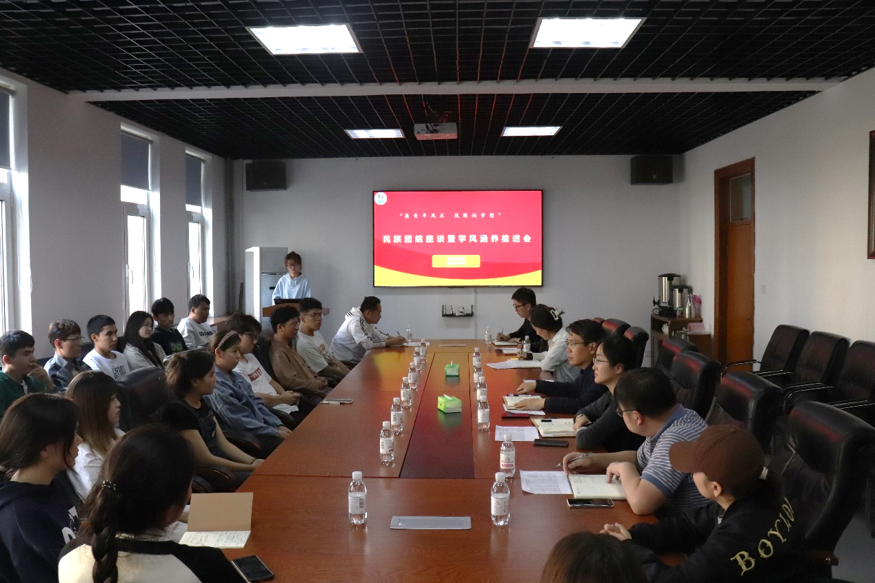 10月17日,高分子学院民族团结座谈暨学风涵养推进会在403会议室召开。学院党委书记孙洪广、院长闫业海、党委副书记兼副院长尤亭亭、学生处少数民族辅导员巴合提努尔、学院部分辅导员及各年级新疆籍少数民族代表参加座谈会。会议由辅导员韩政主持。