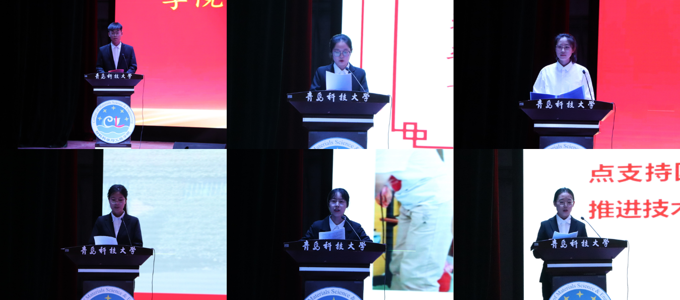 学生代表、材料学院校园文明宣传大使邓如帅宣读了《关于践行校园文明礼仪的倡议书》。王学花、刘晓伟、仝意宏、段梦璐、勾晓彤等五名材料学院校园文明宣传大使分别结合“纳米精神”和校园文明建设开展主题宣讲。
