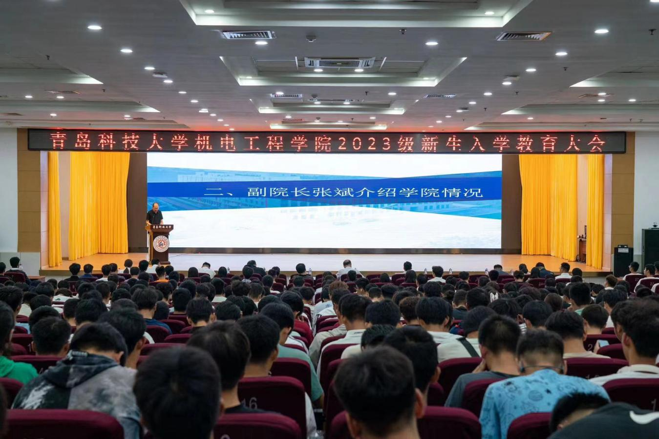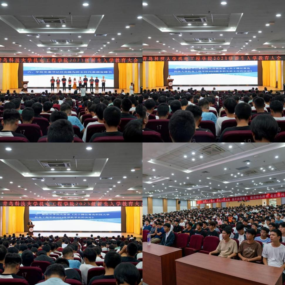 为帮助学生更快地适应和融入大学生活,进一步加强2023级学生思想政治教育工作,9月26日下午,机电学院在崂山校区第二报告厅举行2023级新生入学教育大会。学院党委书记任允晓、党委副书记兼副院长肖强,副院长张斌、李剑光,班主任代表,学院全体辅导员,2023级全体新生参加会议。会议由学工办主任、团委书记王娟娟主持。