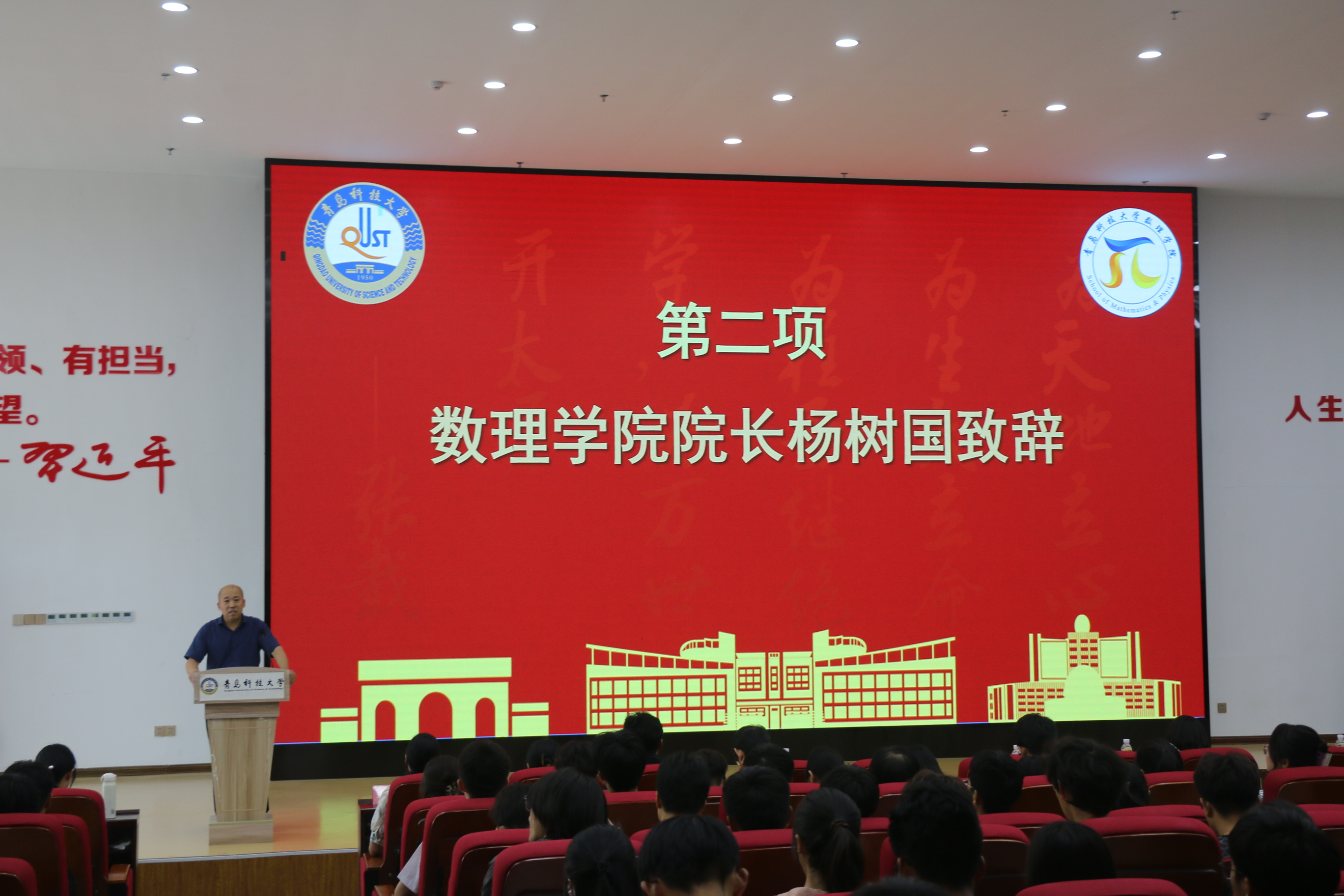 大会在庄严的国歌声中拉开序幕。杨树国介绍了学院概况、学科建设、科学科研、师资队伍、学科竞赛等基本情况,期望同学们珍惜学习机会,热爱所学专业,做到勤学好问、温故知新;要积极参加学科竞赛,学以致用,积极参与文体活动,全面发展;要于国为家,关心“国事”“天下事”,积极回馈社会,为创造美好社会贡献一份力量。