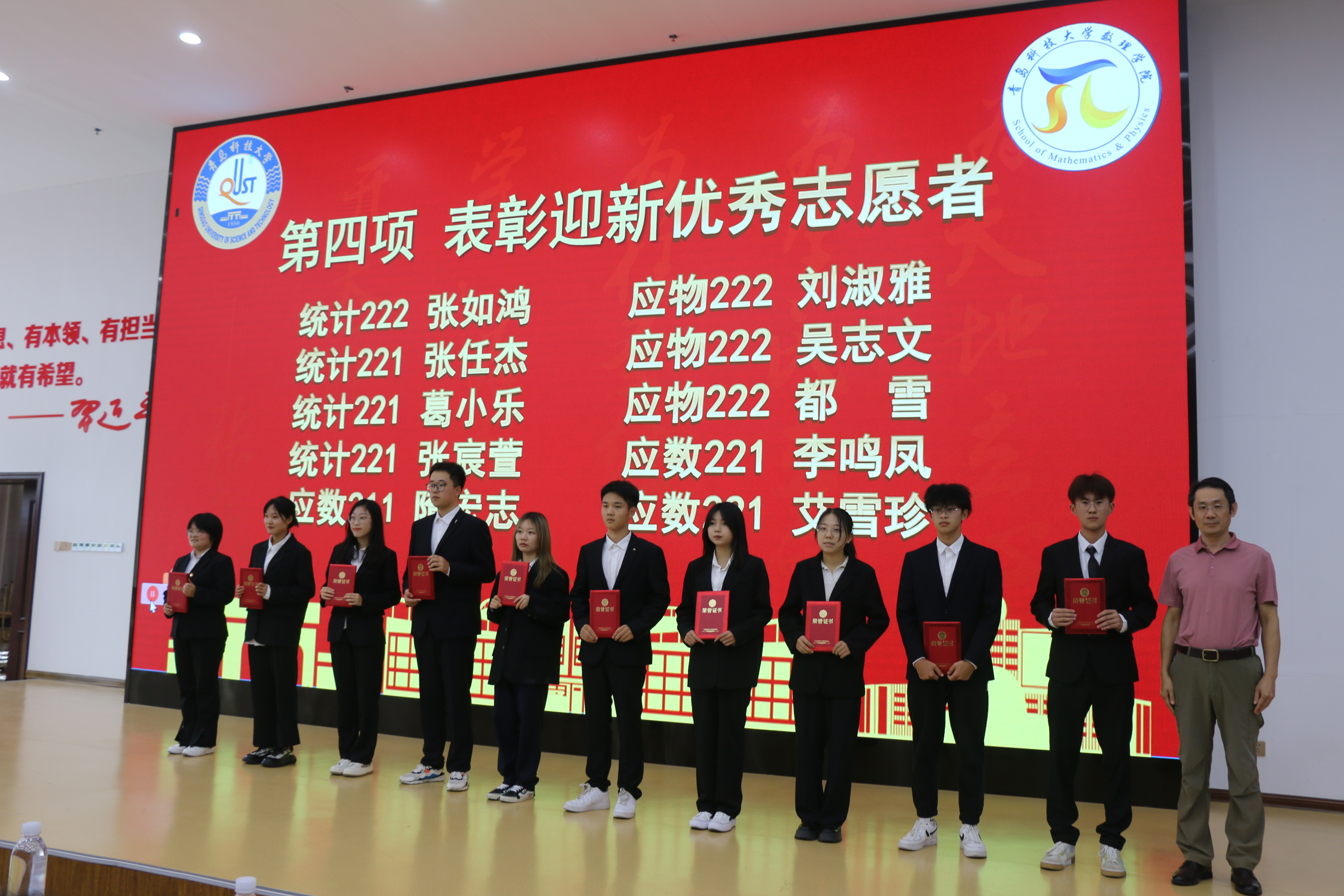 王明辉为优秀志愿者颁发荣誉证书,李雯雯为领航学长、学姐颁发荣誉证书。