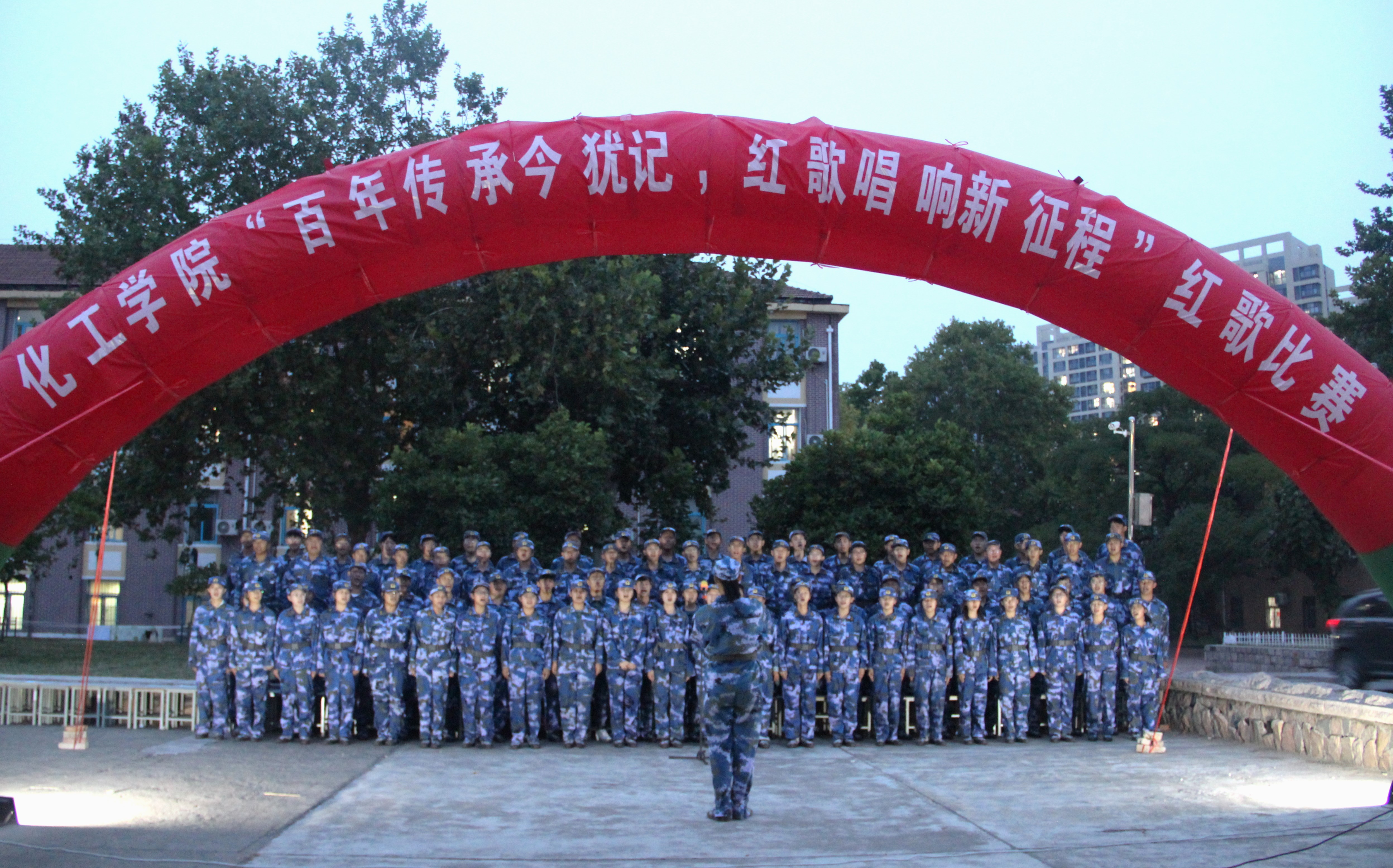 9月11日,化工学院在小五四广场举办“百年传承今犹记,红歌唱响新征程”2023级新生红歌比赛。军训二团政委、海洋学院党总支副书记臧传永,化工学院党委副书记李春家,团委书记秦洪庆,辅导员柳晓阳、孙希玲、李颖,军训二团一营全体教官及学院学生会骨干担任评委。