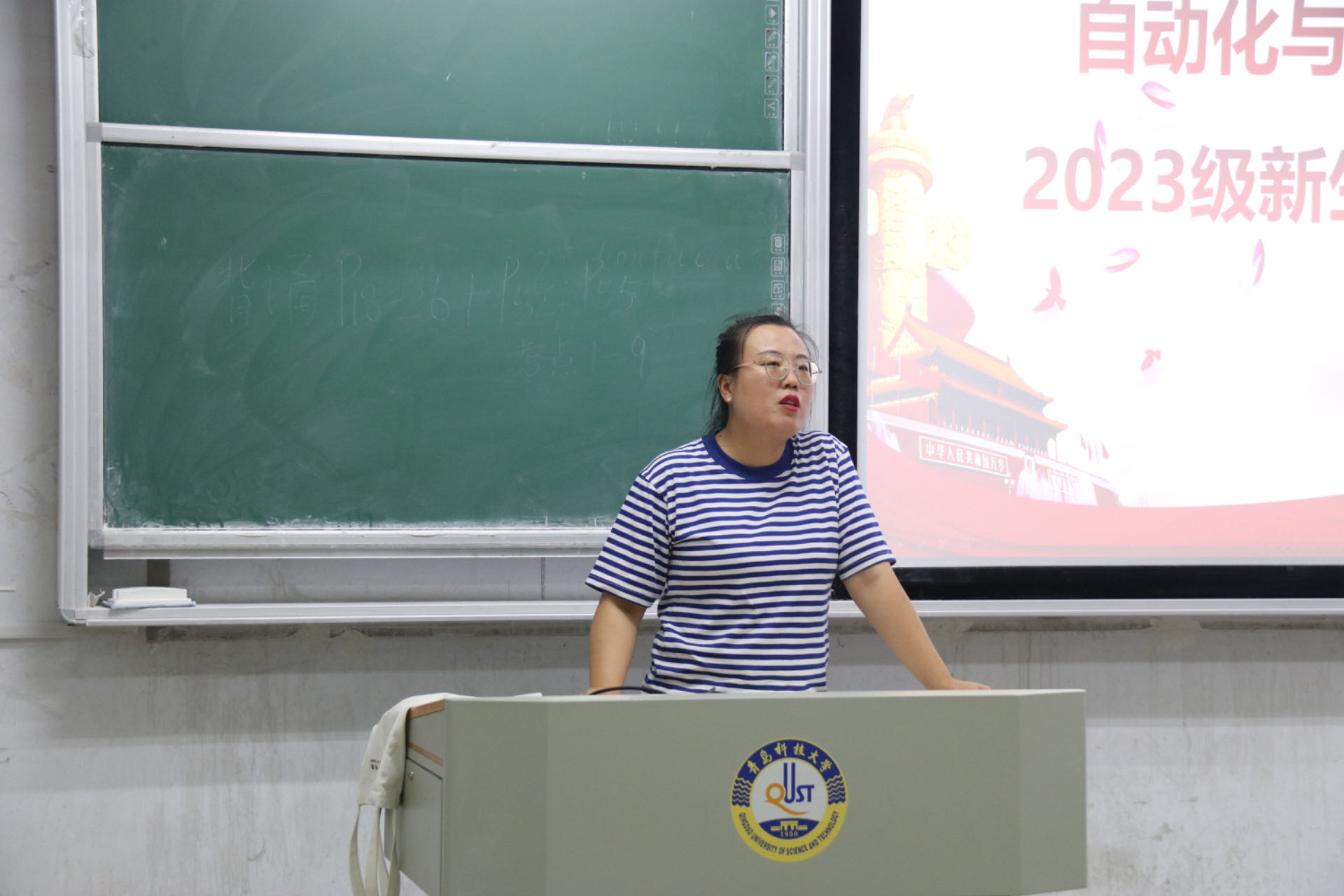 会上,郭蒙蒙首先代表学院欢迎全体新生加入自动化学院的大家庭,简要介绍了学院的办学规模、学科特色、师资队伍等相关情况,并以学习团的十九大重要会议精神为契机,对党团理论知识、时政热点新闻、防诈骗安全知识等重点内容予以强调。