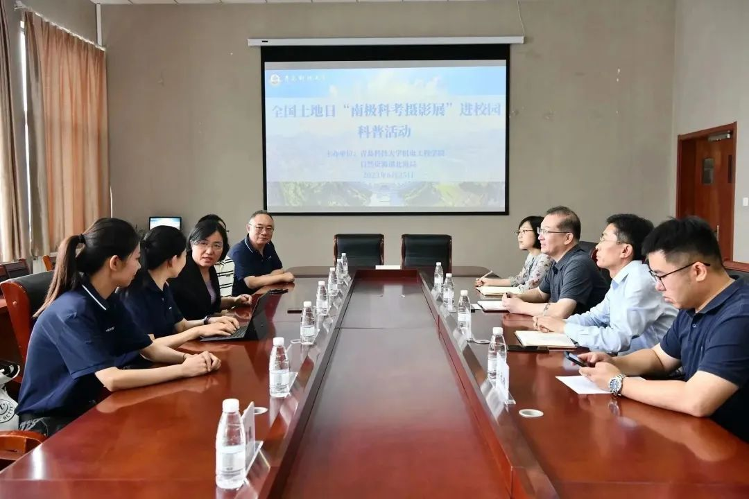 活动伊始,机电工程学院党委书记任允晓、党委副书记兼副院长肖强和自然资源部北海生态中心书记兼主任孙培艳就本次极地科普宣传活动组织筹备、后续加快推进合作等事项进行座谈交流。双方一致认为本次活动是走入校园学习宣传贯彻习近平生态文明思想、提高在校学生认知极地科考、了解自然资源部工作成效的一次十分接地气的宣传活动,后续双方将在自然资源调查、极地科考与海洋机械设备、无人船舶等方面加强业务合作与科研交流。
