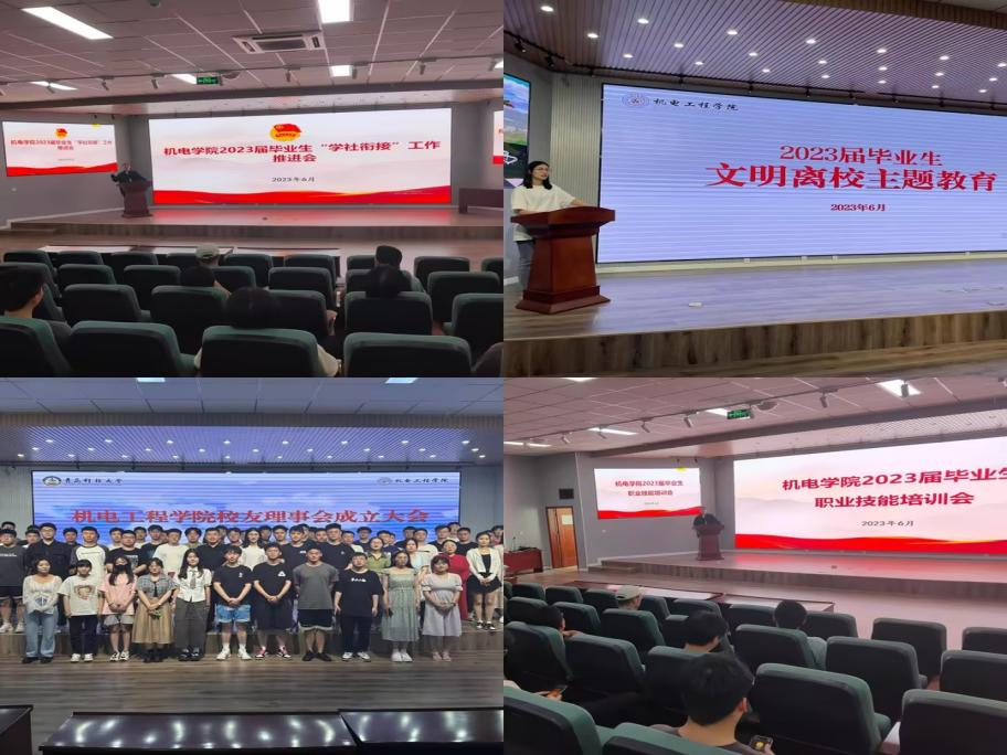 为深入学习贯彻习近平新时代中国特色社会主义思想,全面落实“立德树人”根本任务和“就业育人”工作目标,以“大思政”工作理念高质量做好毕业生离校教育,机电工程学院开展“机扬青春 就赢未来”2023届毕业生主题教育系列活动。