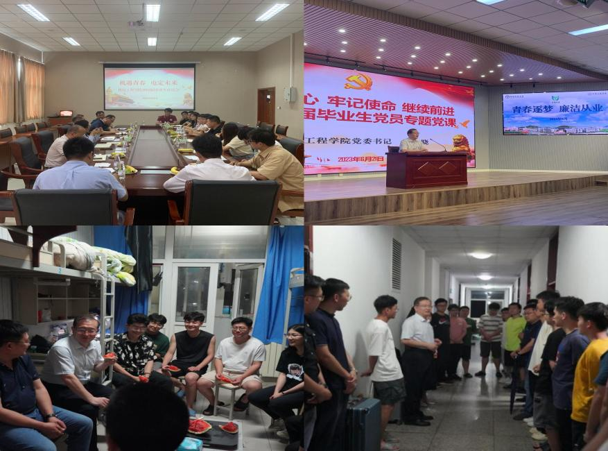 学院开展“机遇青春 电定未来”2023届毕业生座谈会,活动期间,各位老师与同学们进行亲切交谈,详细了解同学们的就业、考研等未来规划情况,共话成长,共叙别情,共畅未来。毕业生代表们分享了大学里的学习、生活、实践、就业等各方面的收获与成长,畅谈人生理想,表达了对母校深深的留恋与不舍;学院开展“青春逐梦 廉洁从业”主题教育活动,引导毕业生树立廉洁观念、强化法治意识,扣好职业生涯“第一粒扣子”;举办“行而不辍 未来可期”走访宿舍活动,学院领导班子及全体辅导员走进宿舍,为全体毕业生送上象征红红火火、硕果累累的西瓜,期望大家在未来的工作、生活中牢记母校和师长的嘱托;学院分批次召开毕业生安全主题教育,由学院辅导员就人身安全、财产安全、网络安全、就业安全等方面进行教育宣传,引导学生树牢“安全第一”思想,同时邀请属地派出所民警同志现身说法,通过案例警示教育的方式,切实提高毕业生离校安全防护意识和技能,顺利实现从学校到社会的过渡。