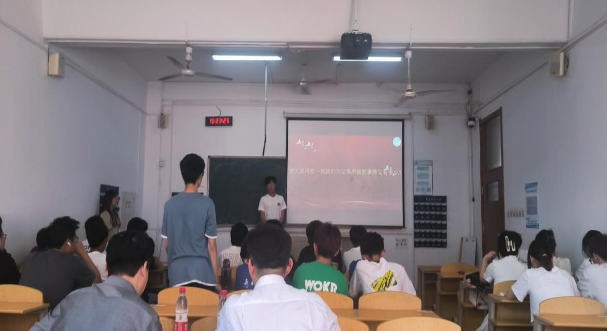 本次班会以感恩父母为主题,朱怀滨同学讲解了父亲节、母亲节的由来;李争同学播放了“感恩”主题视频;班长袁溪骏与同学们进行互动,随机提问了同学们是否记得父母的爱好、兴趣和生日;团支书任璐瑶发放了明信片,同学们在卡片上写下了对父母想说的心里话;其他同学分享了和父母相处的小故事;班会最后,袁溪骏深情献唱了歌曲《爸爸妈妈》。