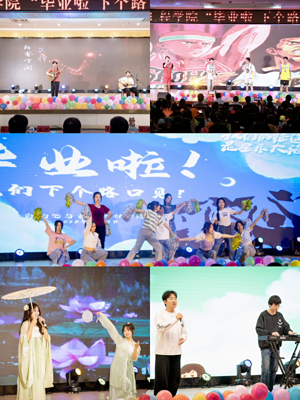 此次毕业歌会分为“青春你好”和“下一站再见”两个篇章,运用乐器弹唱、歌伴舞、电声乐队、情景演唱等形式,呈现出立体多元、热烈澎湃的现场效果。师生齐聚一堂,满怀激动喜悦的心情,共同回顾过往四年点滴母校生活,为2023届自家人送上最真挚的祝福,以铿锵之声唱响不负青春的时代之音,以活力身姿刻画自家青年的豪情满怀。