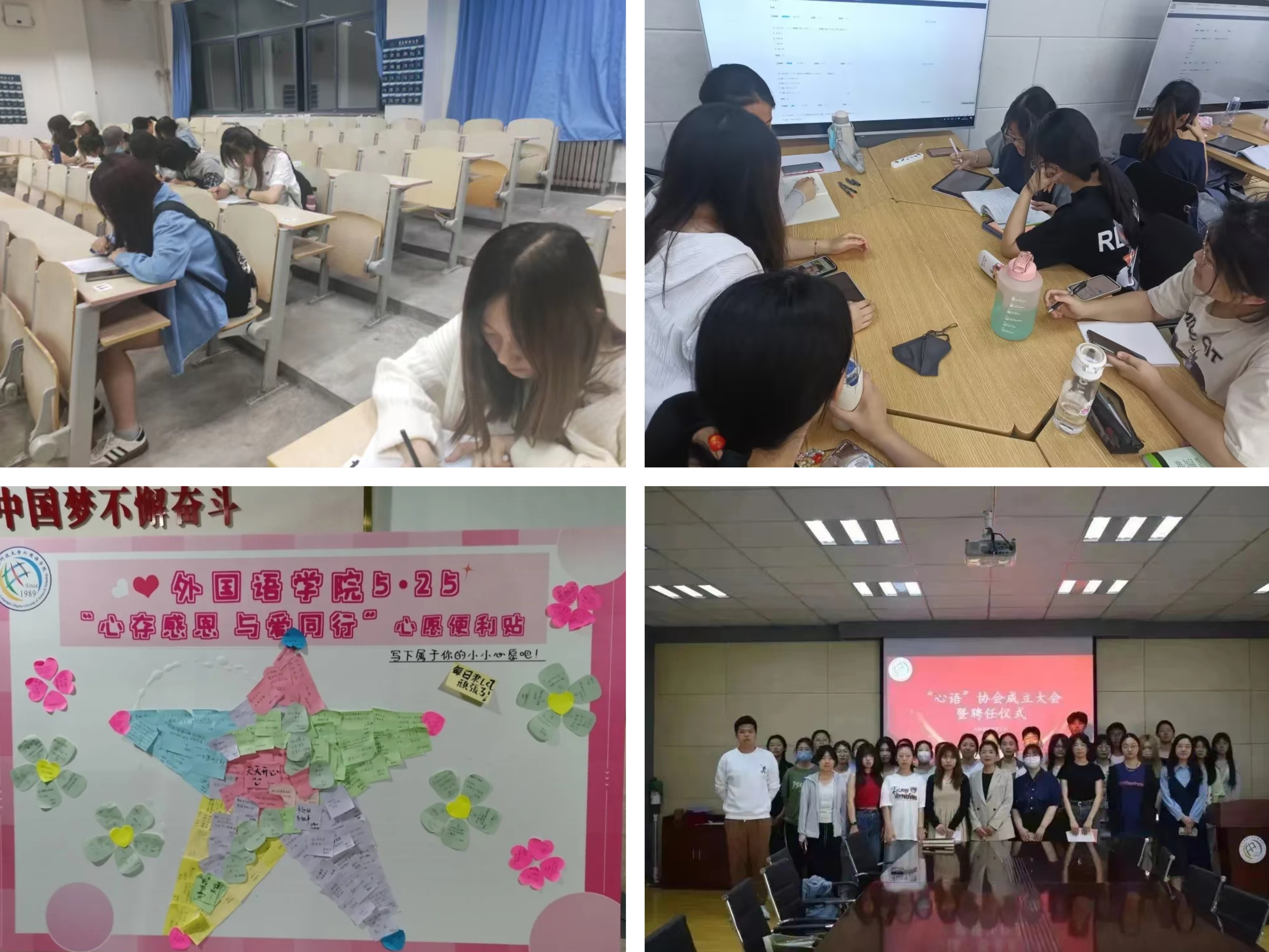 为培育学生自尊自信、理性平和、积极向上的健康心态,使外院学子能在变幻复杂的环境中做出适合自己的正确抉择。学院积极加强心理工作建设,成立了“心语”协会,开展了“525”心理健康主题活动,如“心存感恩,与爱同行”主题活动、师生趣味运动会等活动,鼓励同学们好好爱自己,敢于面对困难、挫折与挑战,为同学们的学习成长奠定了坚实的心理基础,有助于提升学生的文明礼仪素养。