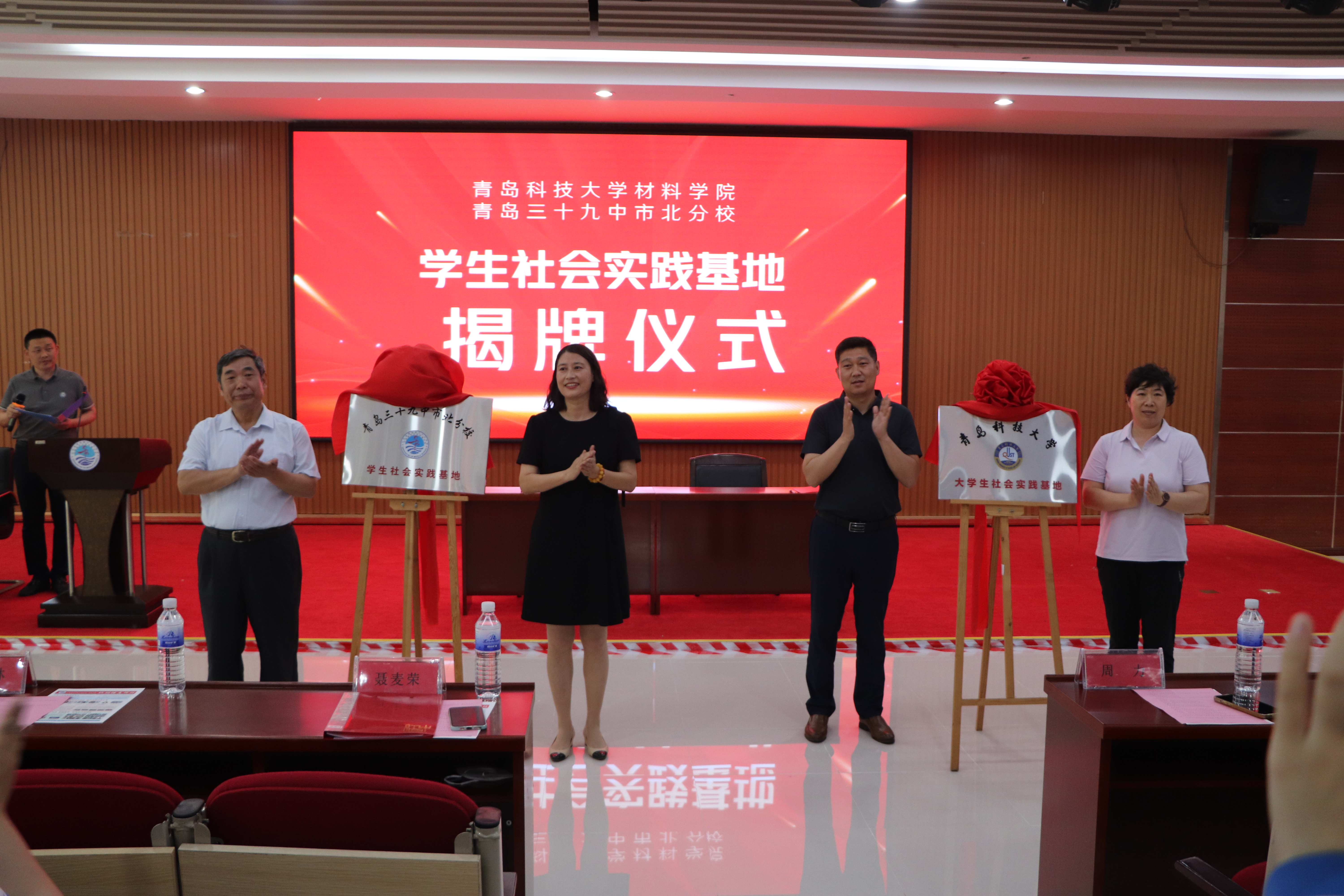 青岛第三十九中学(市北分校)校长聂麦荣与学院党委书记杜芳林签订两校共建学生社会实践基地协议,并为两校社会实践基地揭牌。
