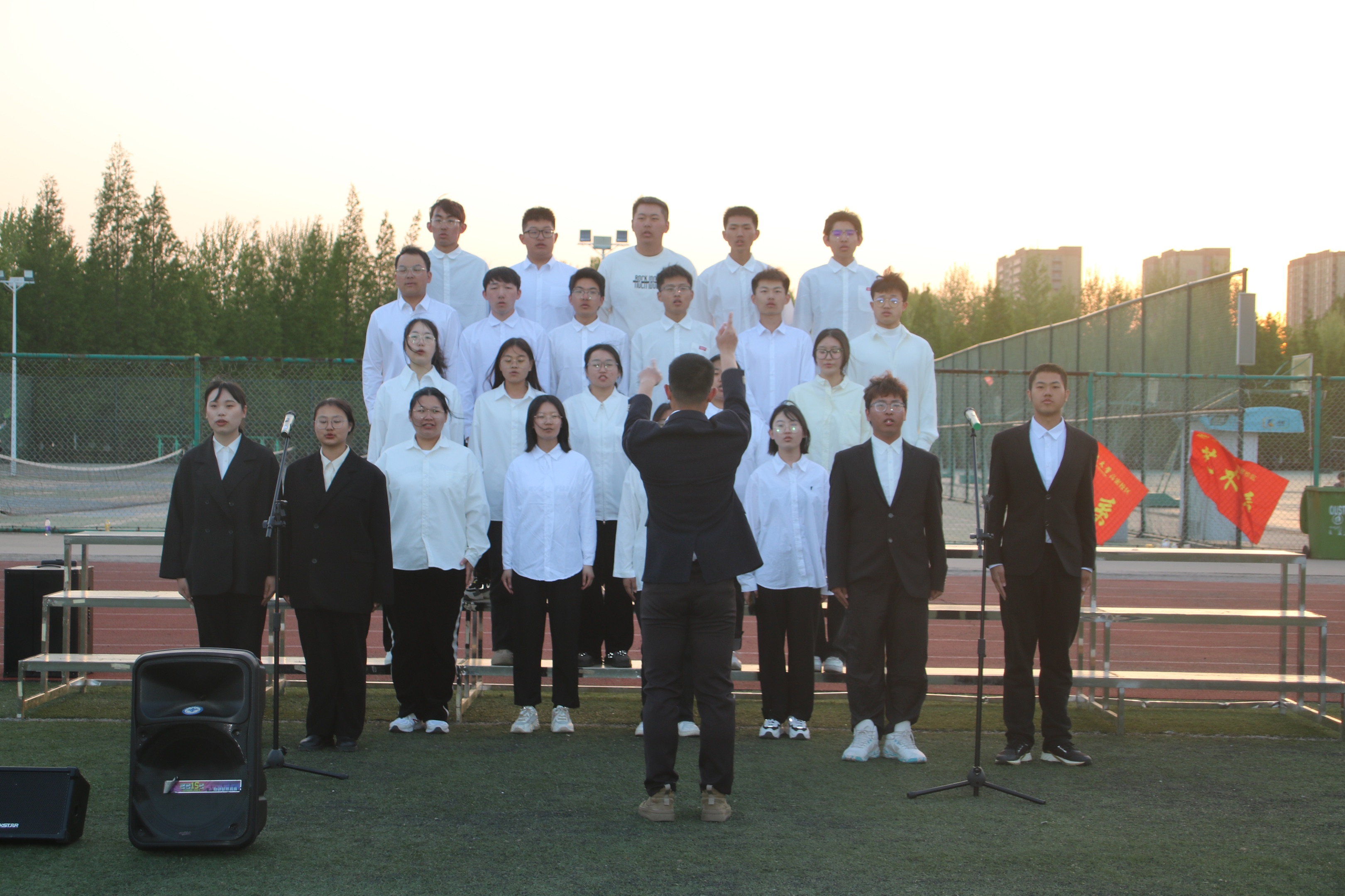 为传承五四精神,丰富军训生活,激发校区学子爱校荣校情怀,增强校区各专业学生凝聚力与集体荣誉感。4月26日晚,“青春向党 唱响荣光”五四青春歌会初赛暨2022级校歌合唱比赛在二期操场举行。