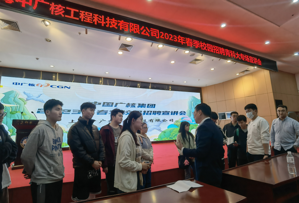 为全面贯彻落实党的二十大报告关于实施就业优先战略的新部署新要求,充分挖掘企业资源,推动高校促就业专项行动有新招、见实效,自动化学院与中广核集团开展全方位深度校企合作,实现从“访企拓岗”到“携岗进校”一条龙精准就业服务,打通毕业生从高校到企业的最后一公里,全力助推2023届毕业生高质量就业。