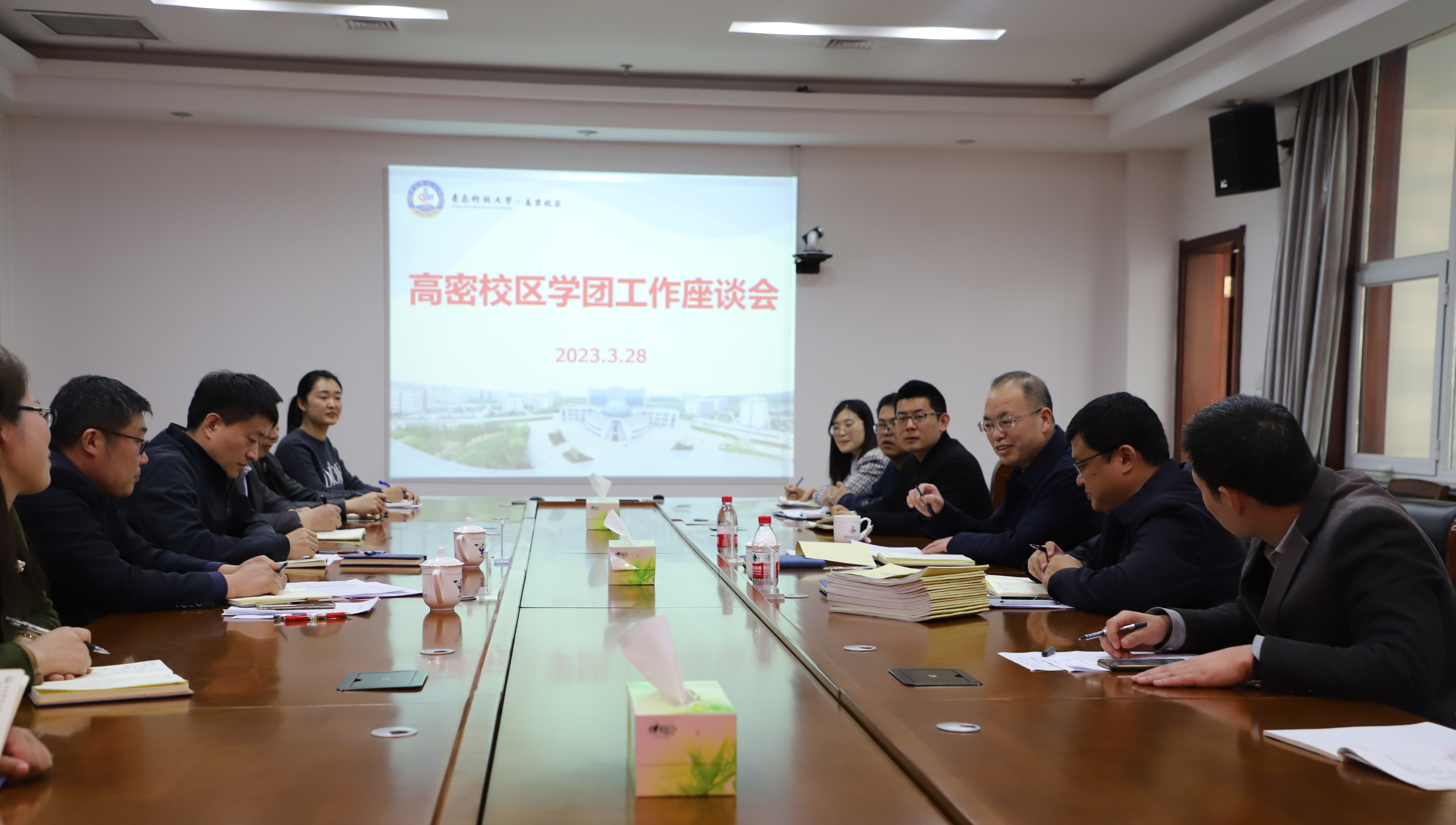 3月28日,学校党委常委、副校长丁林学生处副处长宋飞一行到高密校区座谈调研学团工作。会议由高密校区党委书记王建民主持,全体学团队伍参加
