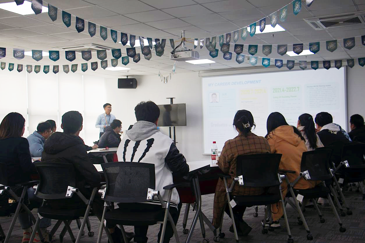 提问分享环节,三名优秀毕业生就自己入职后的工作、职业发展进行了分享,同学们就如何找准自身定位、如何看待女性职场歧视、科研的主要方向以及入职要求等方面进行提问,公司研发工程师、人力资源经理分别回答了同学们的问题。