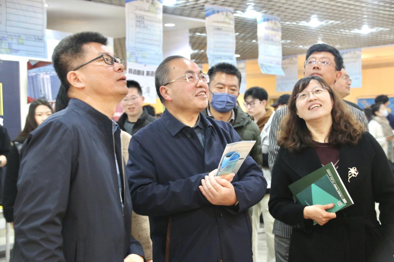 3月21日上午,艺术学院、传媒学院、外国语学院“逐梦青春 就业企航”专场招聘会在美术馆举行,开启了学院2023届毕业生暖心就业之旅。校党委常委、副校长丁林,校党委常委、纪委书记刘明永出席招聘会现场指导工作,学生工作处、就业指导中心负责人王丽、徐华、于江波参加招聘会,艺术学院、传媒学院与外语学院领导、辅导员、部分教师参加招聘会与企业和毕业生交流。