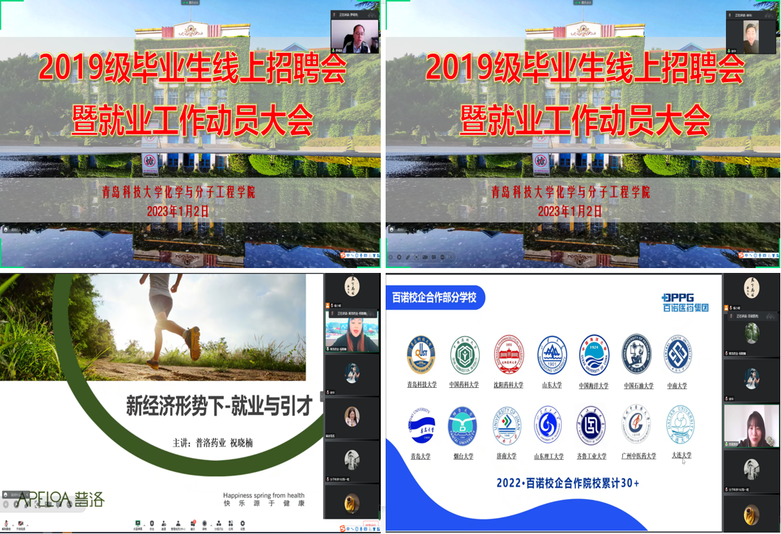 1月2日,化学院2019级毕业生线上招聘会暨就业动员大会线上举行,引导青年学生“离校不离心、求职不断线”。校党委常委、副校长、化学与分子工程学院院长罗细亮,普洛得邦、百诺医药、鲁南制药人力资源负责人,校学生处副处长徐华,学院党委书记王德宝,光电传感与生命分析重点实验室执行主任丁彩凤,副院长高洪涛,学工办全体辅导员,2023届全体毕业生近300人参加会议,学院党委副书记杨小明主持会议。