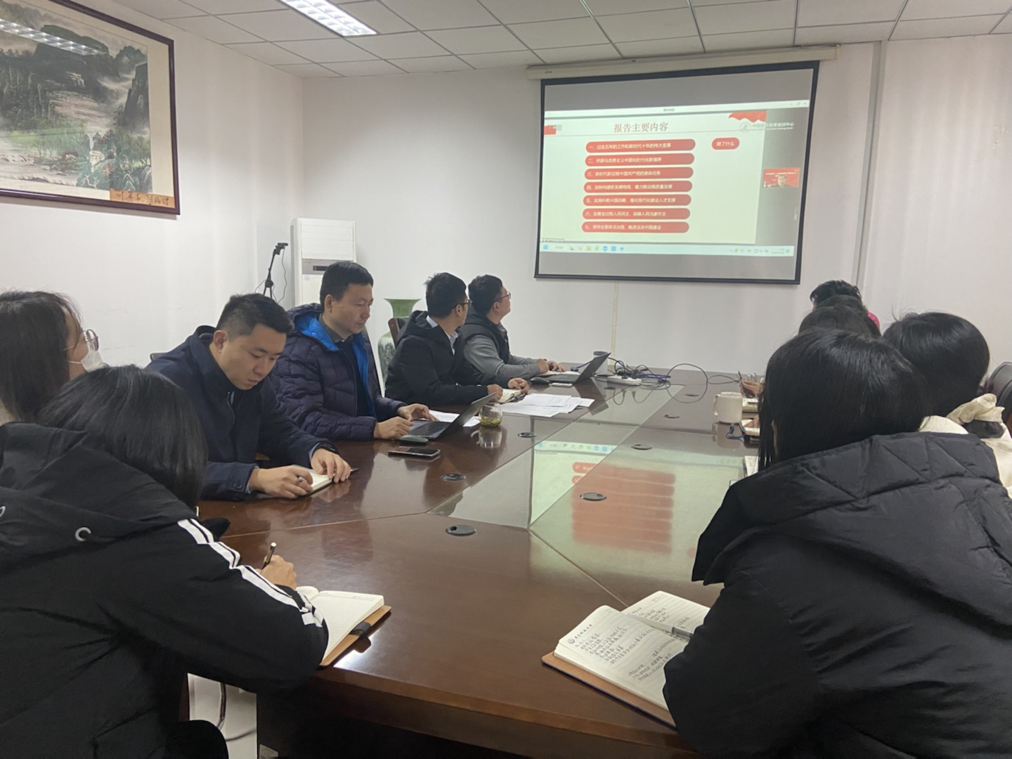 为全面深入学习贯彻党的二十大精神,深刻领悟“两个确立”的决定性意义,进一步增强“四个意识”,做到“两个维护”。12月6日上午,信息学院、数理学院在D2楼406会议室联合展开了辅导员培训交流活动,学习由中国高等教育培训中心举办的“学习贯彻党的二十大精神与新时代高校思政工作高质量发展研讨会”内容为主,集中学习了中央党校(国家行政学院)马克思主义学院、国外马克思主义研究所所长张严的报告。两学院全体专职辅导员参会学习。
