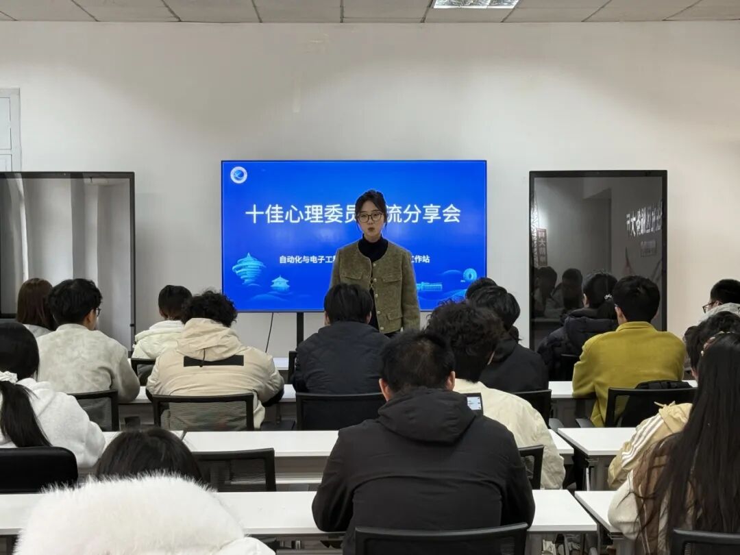 近日,伟德国际1949官网自动化与电子工程学院“智行筑心”心理工作站于南苑一站式学生社区,举办“凝心聚力 筑心护航”心理工作经验交流分享会。学院心理工作站站长丁雅琼,2024级、2025级全体心理委员参会,学院“十佳心理委员”、中法244班曹雅琪作专题经验分享。