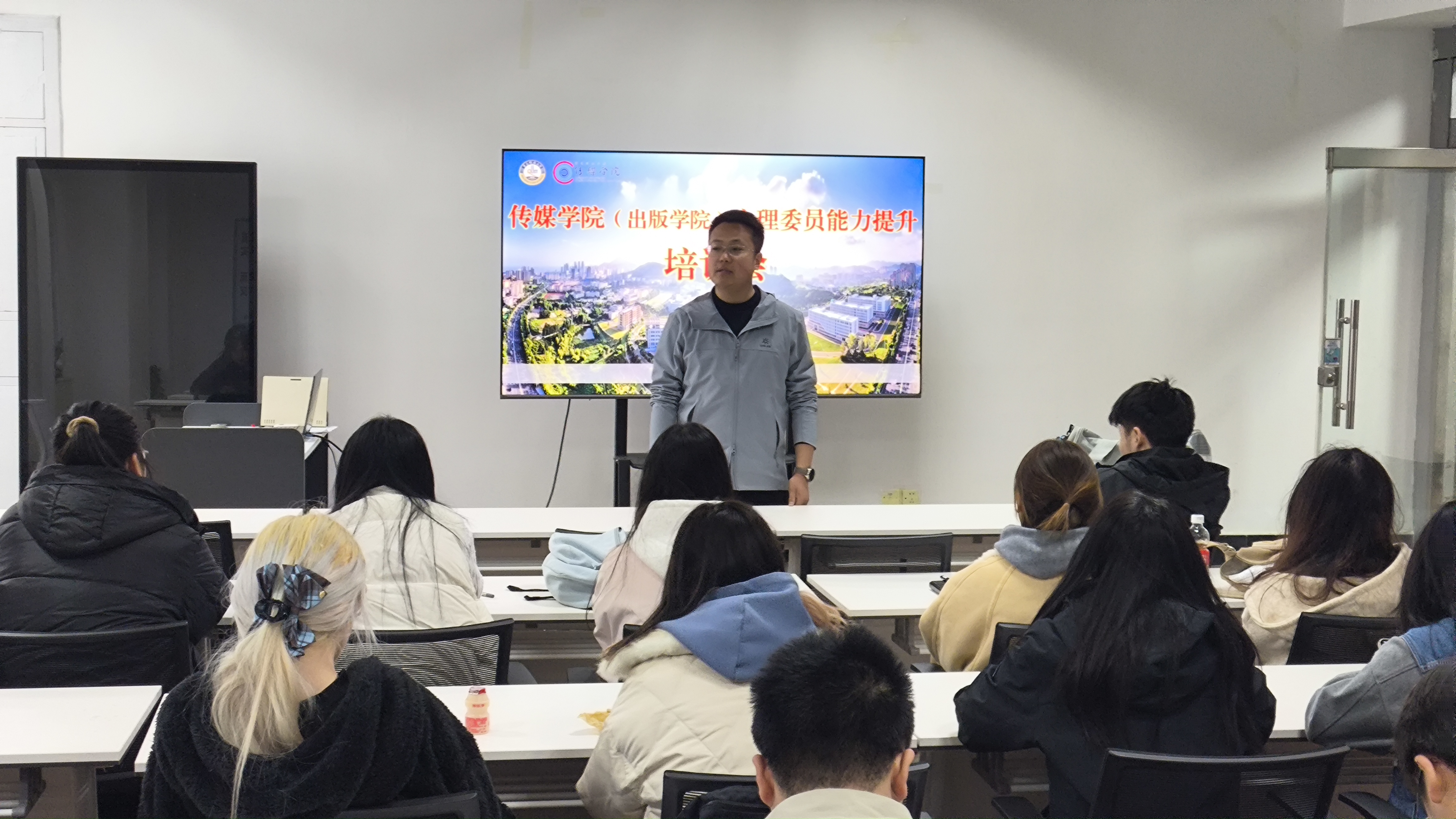 为筑牢校园心理健康防护网,提升心理委员履职能力,4月8日晚,传媒学院在学校“一站式”学生社区召开心理委员能力提升培训会。学院本硕各年级40余名心理委员齐聚一堂,通过授课培训与经验分享,为朋辈心理服务赋能蓄力。