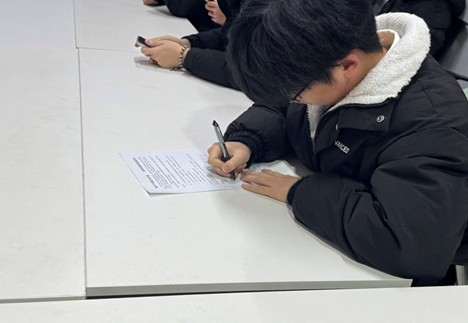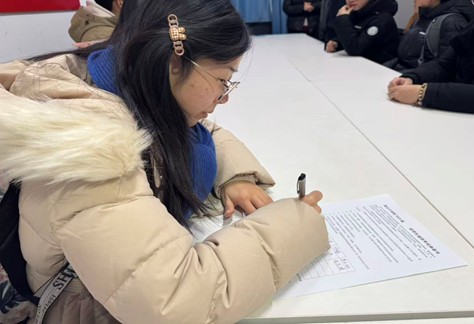 活动伊始,栾佳瑜带领学生党员逐条学习《学生手册》中关于考试违纪、作弊的认定标准及相应处分规定,结合典型案例对条款进行解读,清晰阐明了违反考试纪律的严重后果,让党员们深刻认识到考风考纪的严肃性。随后,工作人员向在场党员发放考试诚信承诺书,大家郑重提笔,在承诺书上签下自己的名字,以书面形式承诺将严格遵守考试规则,杜绝违纪作弊行为,以实际行动践行党员的责任与担当。