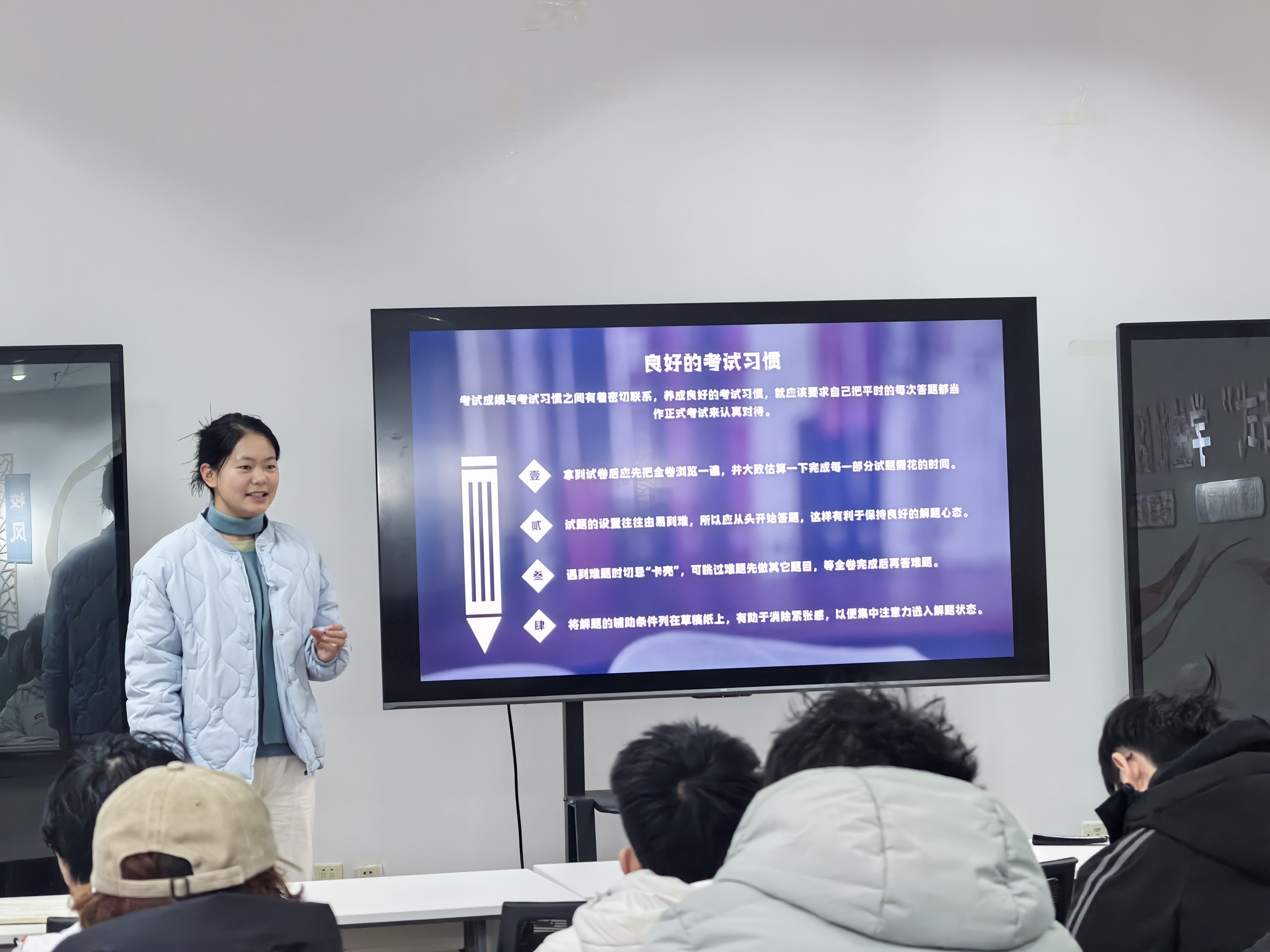 张茹倍紧扣学院学风建设要求,结合学院“学科学习与行业需求衔接”的指导方向,引导大家聚焦核心课程学习,强化“预习—课堂专注—课后复习”的学习闭环意识,通过“一对一帮扶”“笔记交流会”“疑问墙”等举措,推动班级形成“互帮互学、以学促优”的良好氛围,让学风建设与专业成长实现紧密衔接。