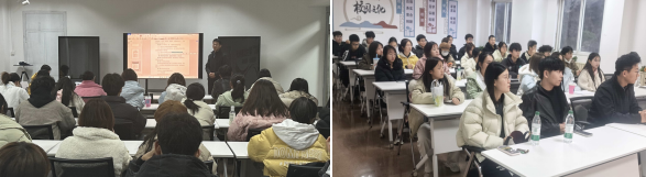 接下来,两位经验丰富的班主任展开经验分享。王恩泽立足学科特点,深入剖析了高等数学在学业发展中的核心地位,针对课堂听讲、课后练习等环节的常见问题,分享了“错题归类法”“模块突破法”等高效学习技巧,强化了同学们对高数学习的重视程度与方法认知。李晓彤以“绩点与成长”为主题,用通俗生动的语言拆解绩点的重要性,强调“找准专业兴趣、适配学习方法”的核心逻辑,引导学生树立科学的学业观。两位老师均结合自身求学执教经历,围绕学习规划、目标设定等内容提出细致建议,为同学们打开了全新的学习视野。