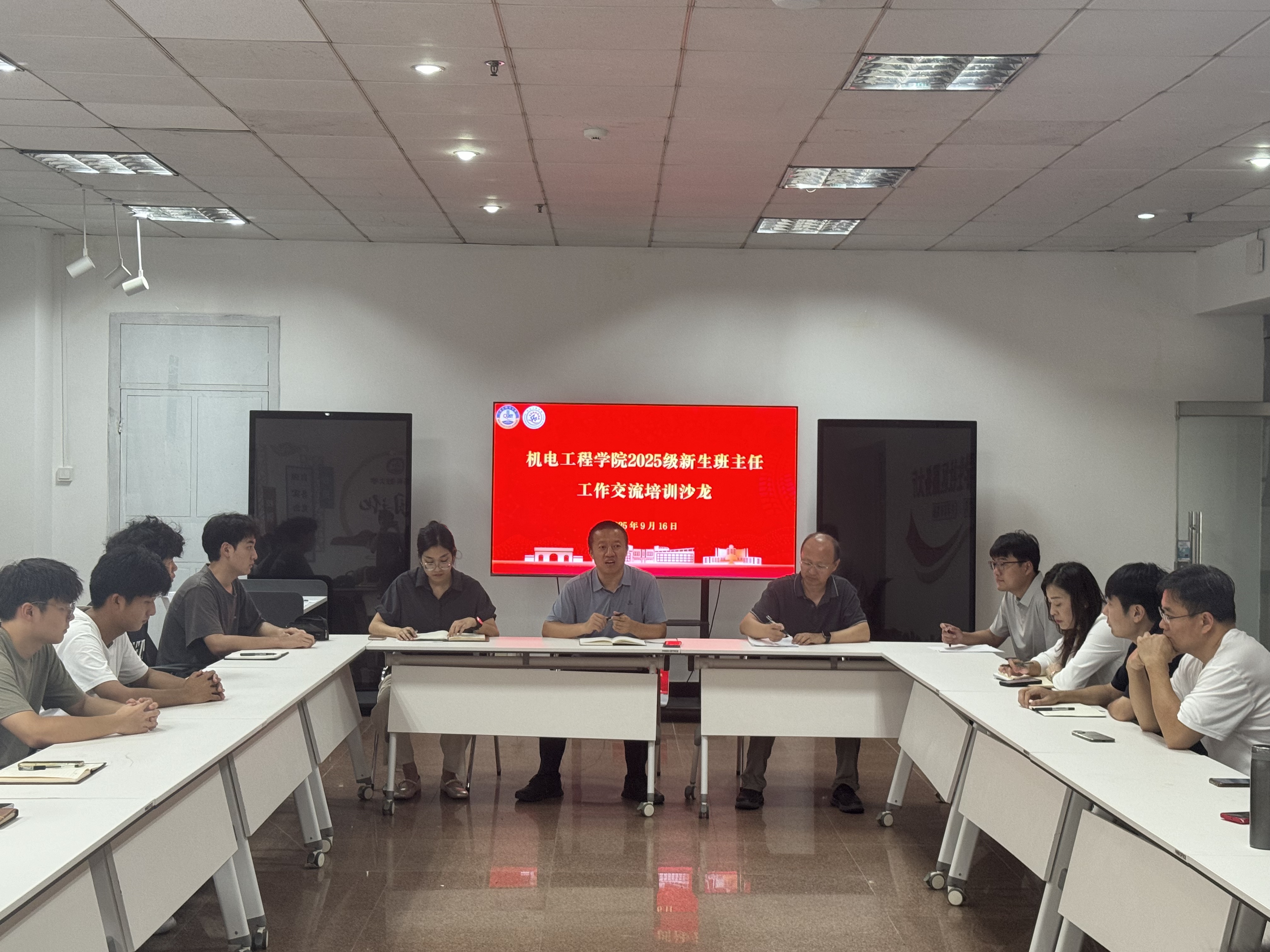 9月16日,机电工程学院在学校“一站式”学生社区举办2025级新生班主任工作交流培训。学院党委副书记兼副院长杨小明、副院长杨化林参加交流,2024级班主任代表、班级代表及2025级新生班主任共38人参会。会议由学院学工办副主任李慧敏主持。
