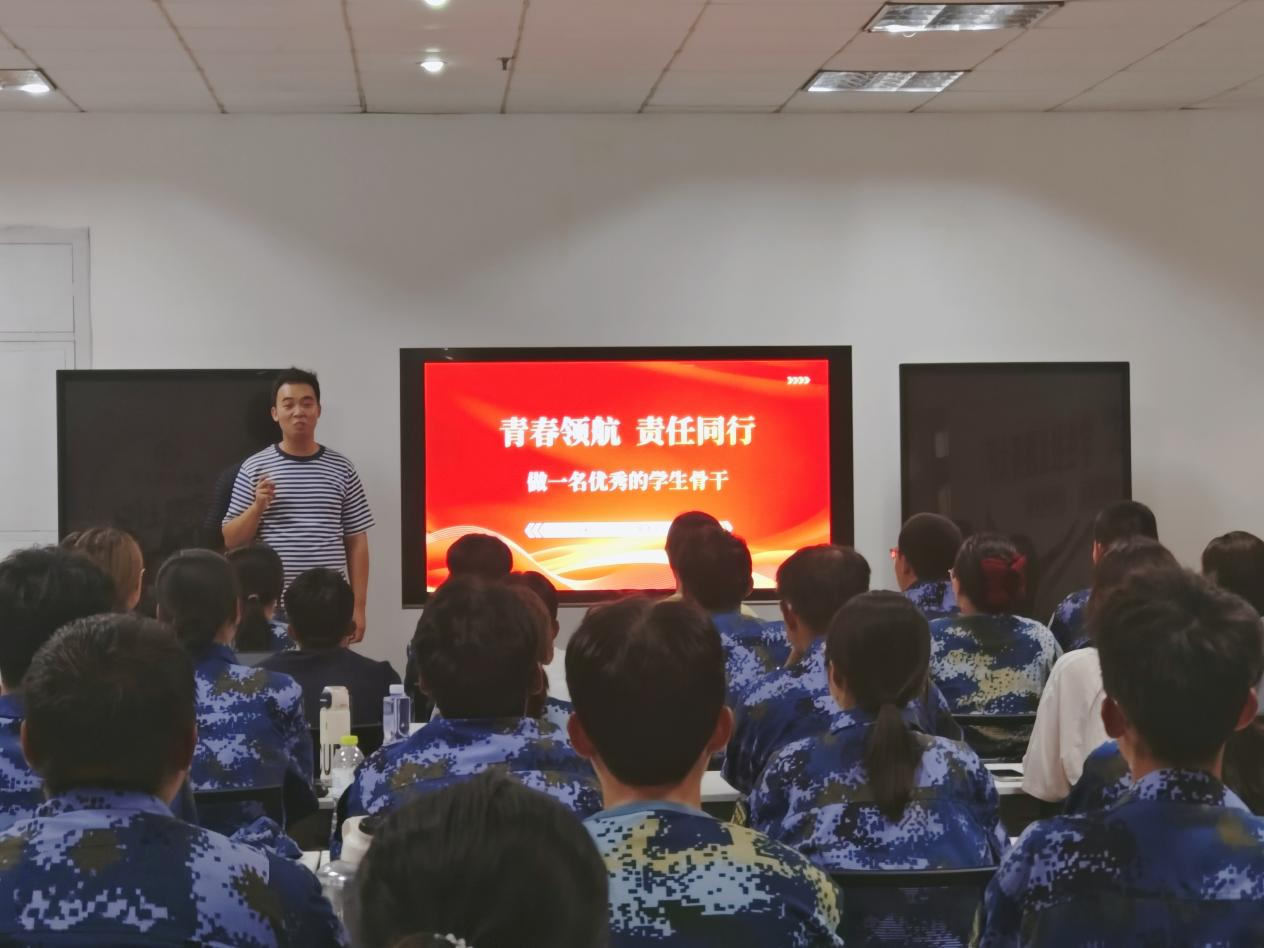 9月14日,信息学院在学校“一站式”学生社区举行“青春领航 责任同行”2025级新生学生骨干培训会,2025级辅导员韩朝阳、2025级军训临时负责人参加会议。