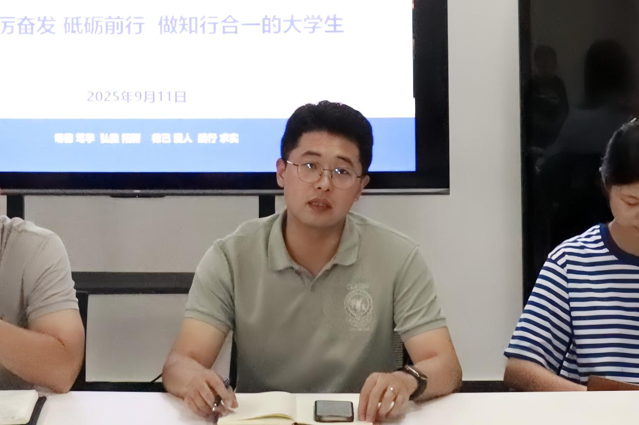 刘名森带领全体人员学习习近平总书记在纪念中国人民抗日战争暨世界反法西斯战争胜利80周年大会上的讲话。结合九三阅兵式,他指出,科技创新是核心战斗力,正深刻改变着战争形态和国防建设格局,作为自动化学院的团学青年骨干,要努力成为既有技术能力又有国家情怀的专业人才,同时要将个人理想融入国家发展大局,将爱国热情转化为推动科技创新的强大动力,以实际行动践行“胸怀祖国、自立自强、协同创新、追求卓越”的自动化人精神,把个人理想融入国家发展大局,不负时代,不负韶华,为实现中华民族伟大复兴的中国梦贡献智慧力量。刘名森对过去一年学院学生会各项工作给予高度肯定与赞扬,并对新一届主席团成员和各部门负责人寄予厚望。