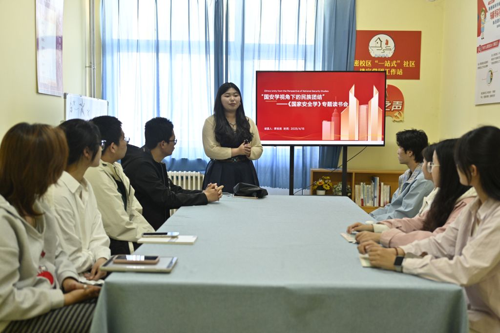 活动中,同学们通过领读《中华民族共同体概论》等书籍,并设置现场问答互动、优秀读书报告评选等环节,使同学们通过文字触摸各民族的心灵史,理解中华民族一家亲的深刻内涵。读书会上,领读同学更是将国家安全教育融入其中,结合新时代背景,探讨在复杂国际形势下,如何以实际行动维护国家安全与民族团结。