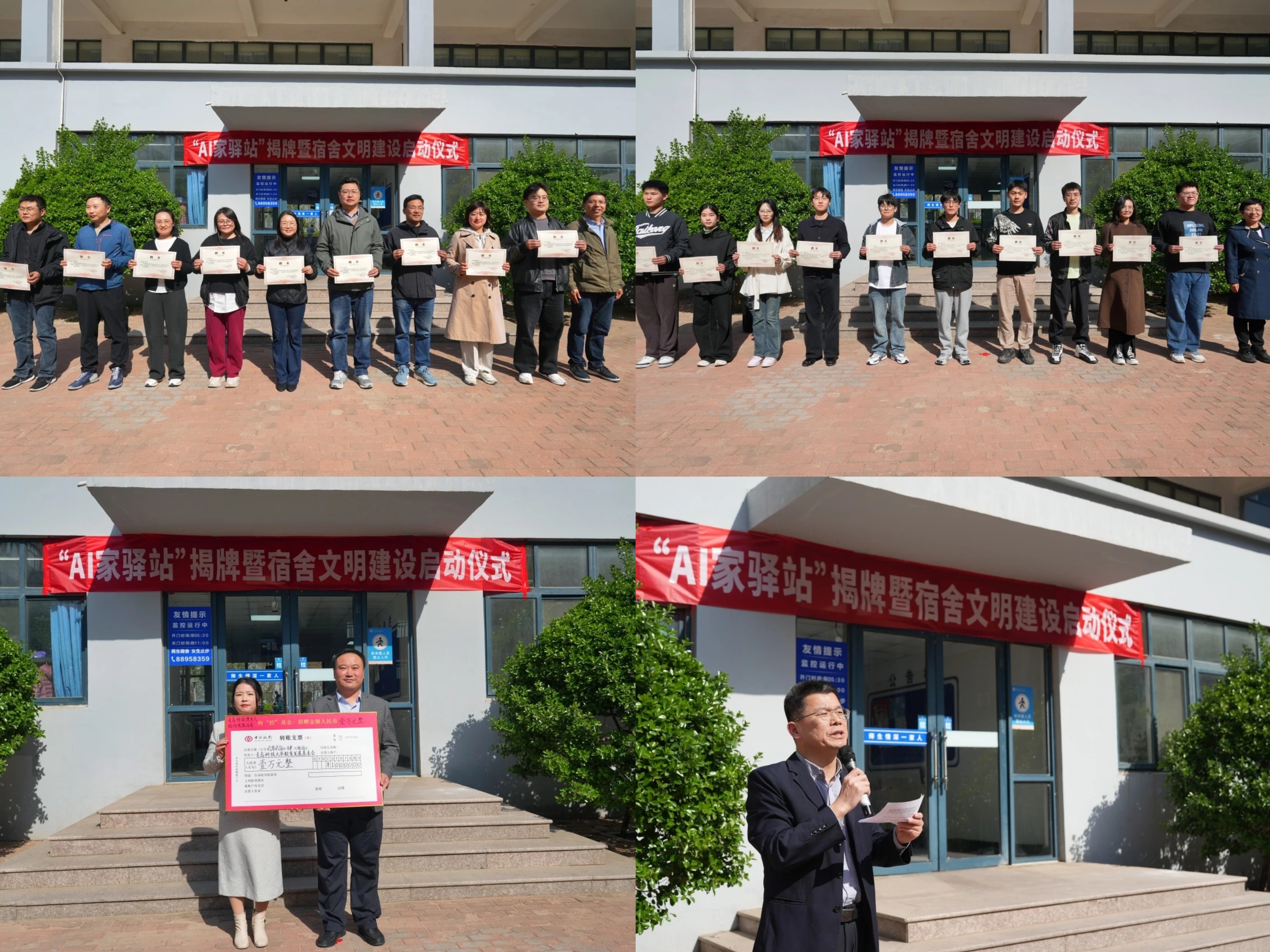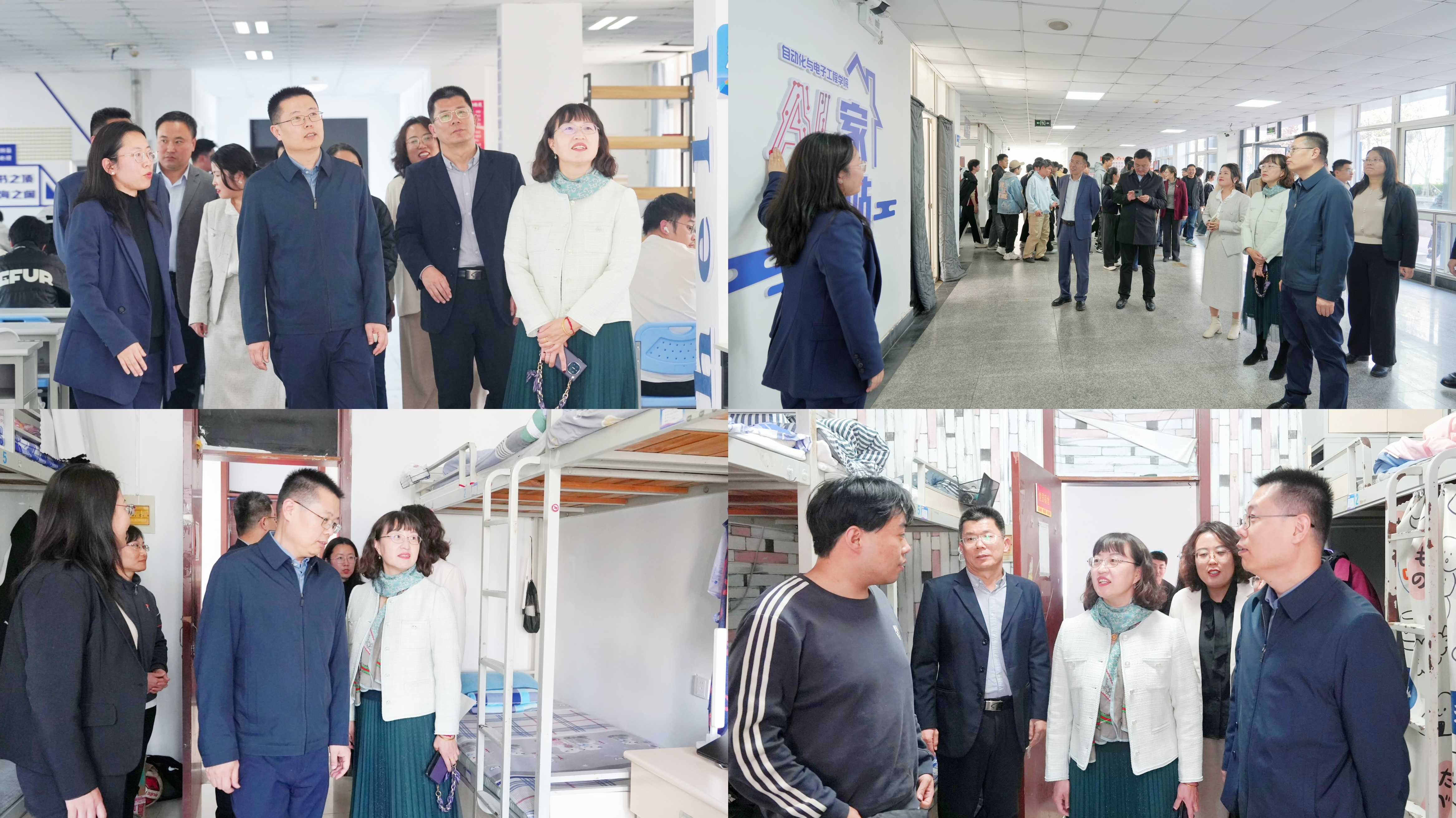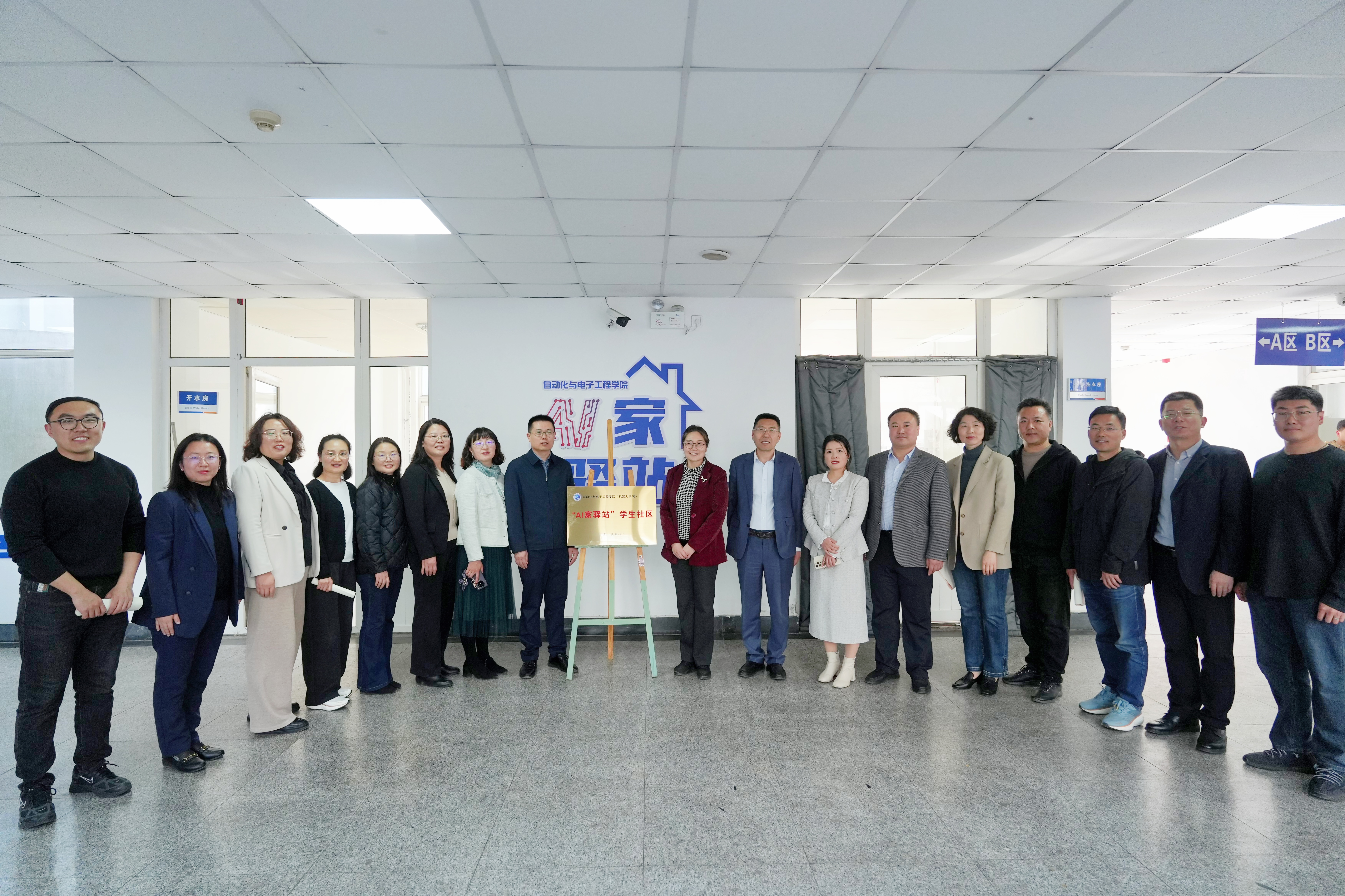 王丽与巩敦卫共同为“AI家驿站”揭牌。为强化社区治理效能,学院出台了《自动化与电子工程学院“AI家驿站”四支力量下沉具体办法(试行)》。仪式现场,匡荣富、张伟、生宁分别为首批学业导师、生活导师、朋辈学长颁发聘书。围绕“AI家驿站”学生社区建设和宿舍文明建设,学院成立了“AI家驿站”功能型党支部,李卉宣读了《关于成立“AI家驿站”功能型党支部的批复》,朱敬义为“AI 家驿站”功能型党支部成员发放中央八项规定精神学习教育资料,学生代表、自动化233班陈韬宇宣读《自动化与电子工程学院宿舍文明建设倡议书》。与会嘉宾在学院学工办主任雷静引导下参观“AI家驿站”社区,实地了解五育赋能区、党员先锋岗、“学习吧”等功能区建设情况,并深入学生党员宿舍观摩建设成果。仪式上,刘名森系统介绍了“AI家驿站”学生社区建设情况。张莹代表特锐德电气股份有限公司向学院捐赠“宿舍文明建设基金”。