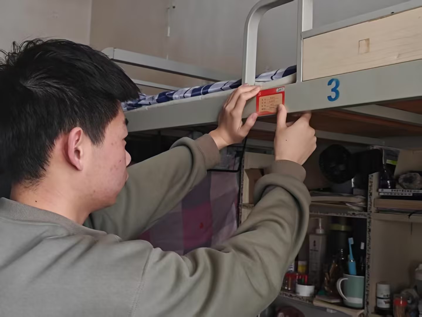 活动通过给党员宿舍和党员床铺挂牌,明确党员身份,发挥先锋模范作用。活动现场,学生党员宿舍统一悬挂红色“党员宿舍”标识牌,床位上张贴“学生党员床牌”,公开党员姓名、专业班级、职务及辅导员姓名,主动接受师生监督。学生党员代表王浩宇表示:“挂牌不仅是荣誉,更是责任。我们将带头维护宿舍卫生、帮扶同学,用实际行动践行初心使命。”与此同时,各班级主要学生干部和全体同学的床位也同步挂牌,以“关键少数”带动“绝大多数”,形成辐射效应。