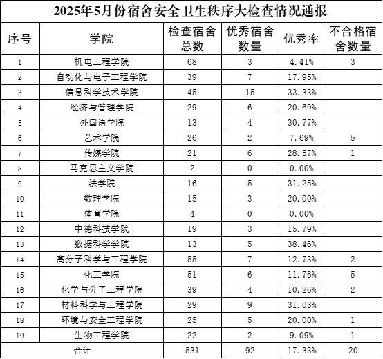 2025年5月份学生宿舍安全卫生秩序大检查情况通报