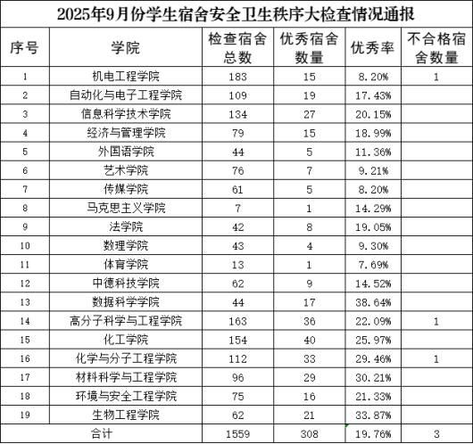 2025年9月份学生宿舍安全卫生秩序大检查情况通报