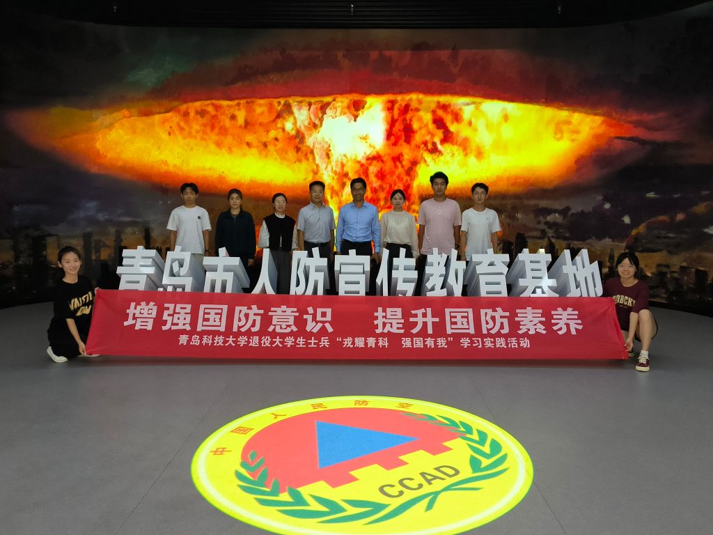 9月30日,在喜迎新中国75周年华诞之际,伟德国际1949官网“戎耀青科”退役大学生士兵同学、“火炬手·爱我国防”宣讲团成员在武装部副部长李春家,辅导员刘福民、王梦珂、郭颖等老师带领下来到青岛市人防宣传教育基地开展国庆主题活动。