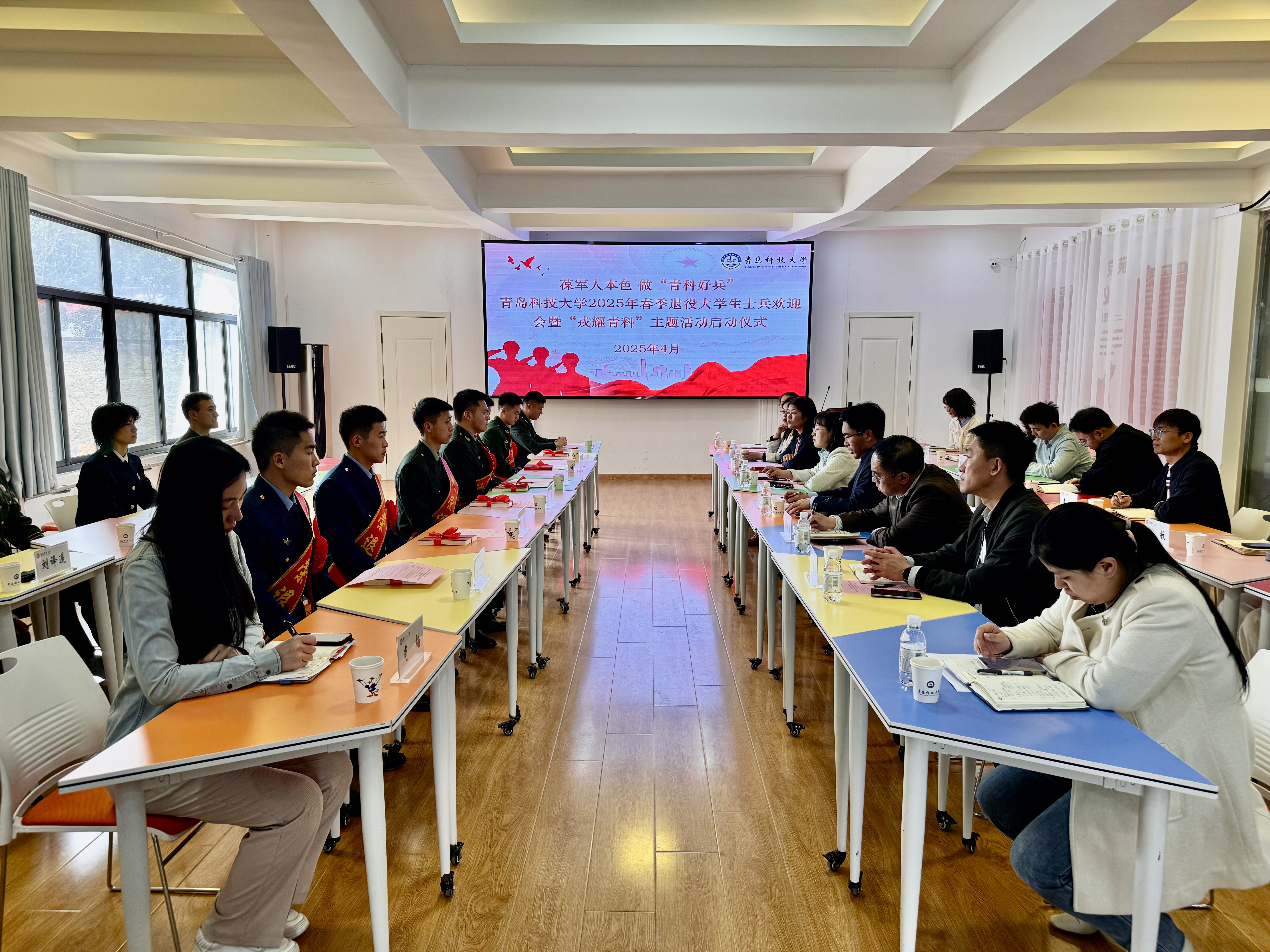 4月16日,学校“葆军人本色 做‘青科好兵’”2025年春季退役大学生士兵欢迎会暨“戎耀青科”主题活动启动仪式在崂山校区举行。
