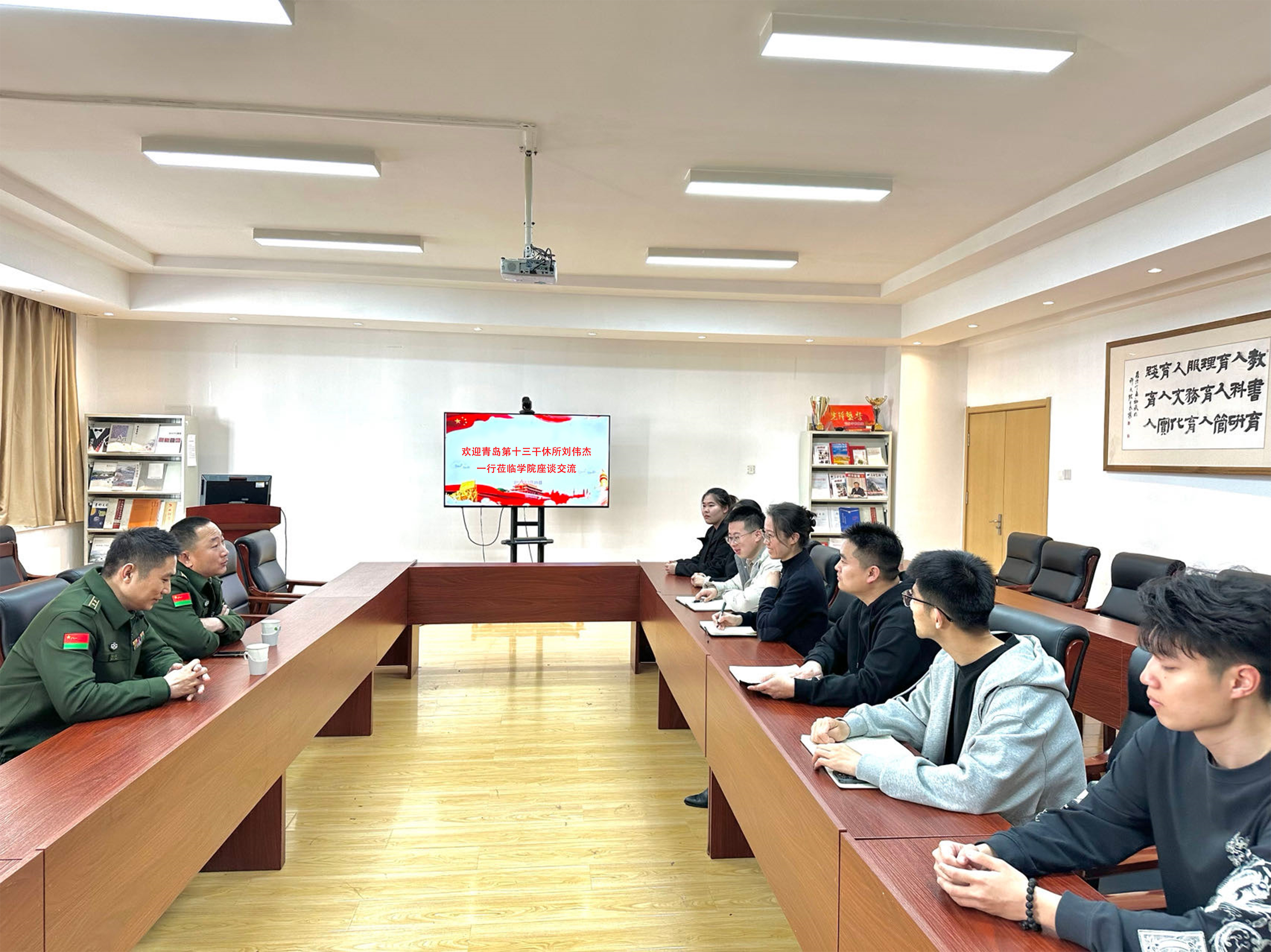 国无防不立,民无防不安。为进一步增强学院师生的国防意识和爱国情怀,巩固发展新时代军政军民团结,凝聚学院拥军力量3月20日,青岛第十三干休所刘伟杰一行走进艺术学院开展交流活动。学院党委副书记兼副院长丁一宁,学工办、团委负责人颜枫,辅导员,学生代表参加本次活动。