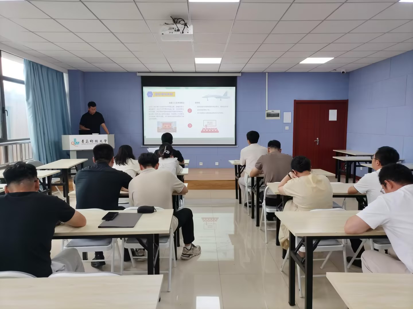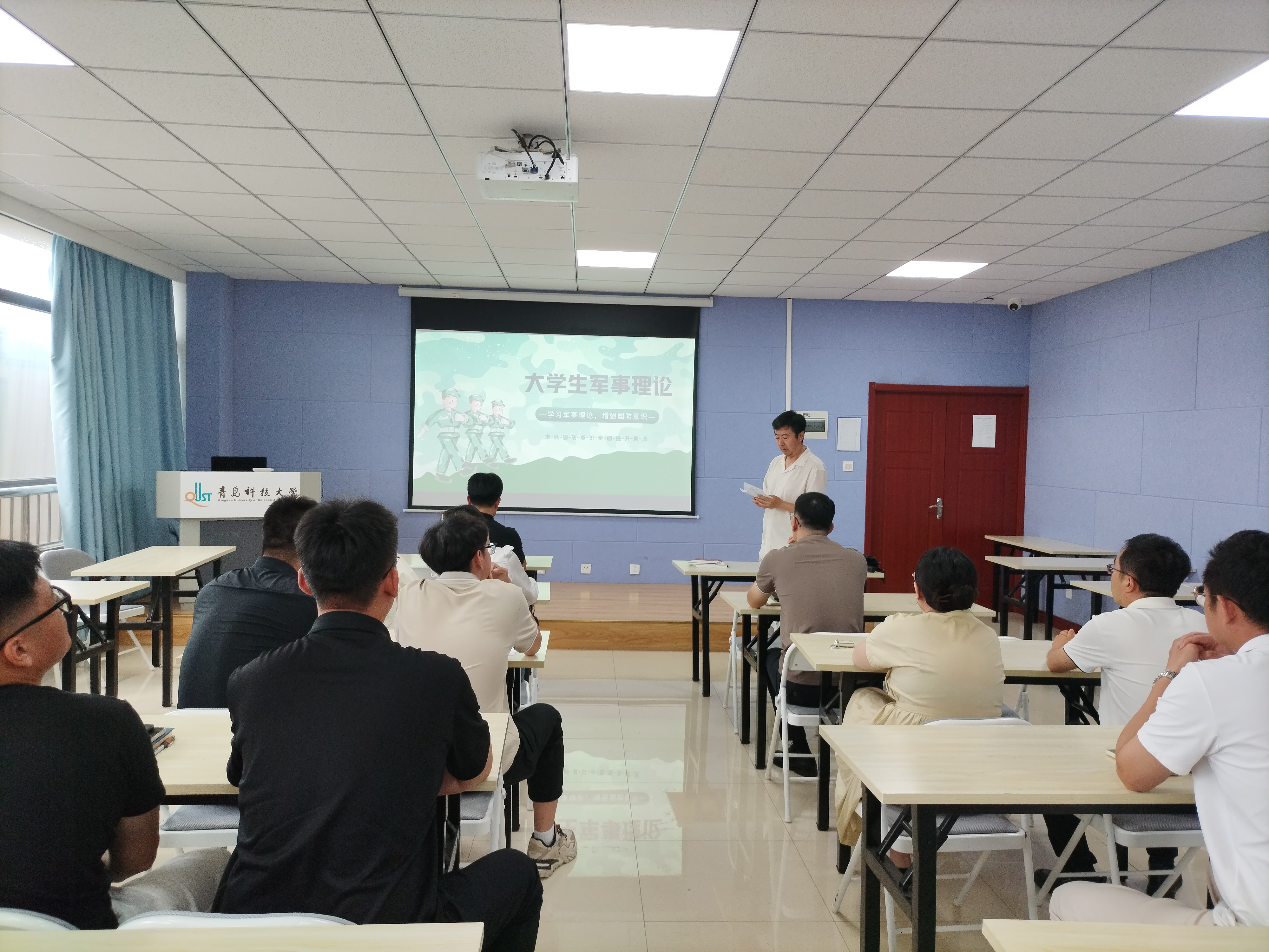 7月16日,学校军事理论课新任教师试讲选拔暨教学技能交流会在创新创业学院308教室举行。党委学生工作部、武装部相关负责同志、校级教学督导员,试讲教师和军事教研室专职教师参加活动。