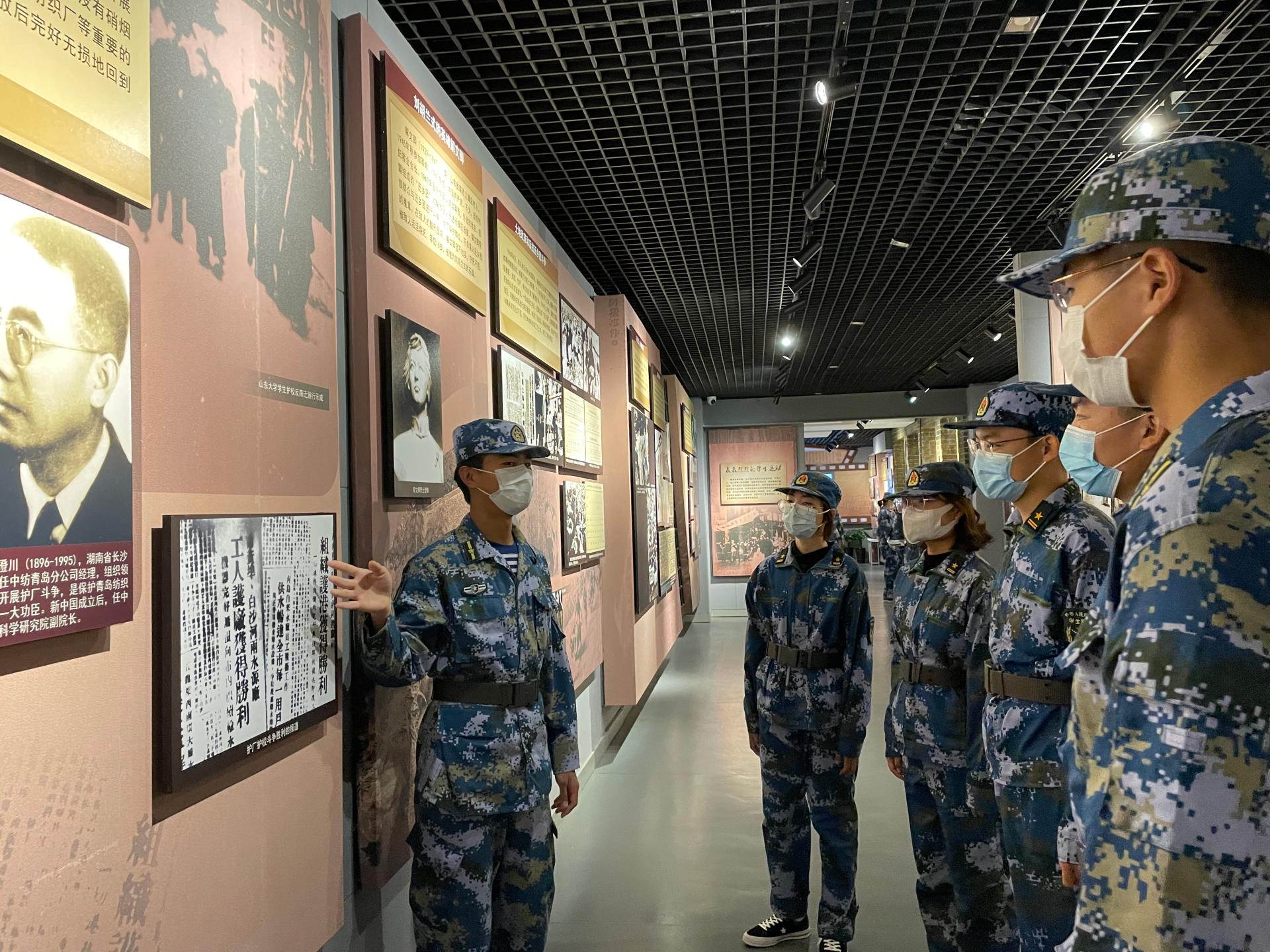 青岛党史馆红色记忆一行,让同学们再次感受到革命前辈为共产主义事业牺牲奉献的大无畏精神,理想信念更加坚定,大家纷纷表示,我们将从百年党史中汲取力量,指导自己的学习和今后的工作实践,要勇于克服困难,争当学习先进和训练标兵,全面提高新生军训教官队伍综合素质,更加出色的完成学校交给的各项任务,推动学校国防教育工作更好的发展。