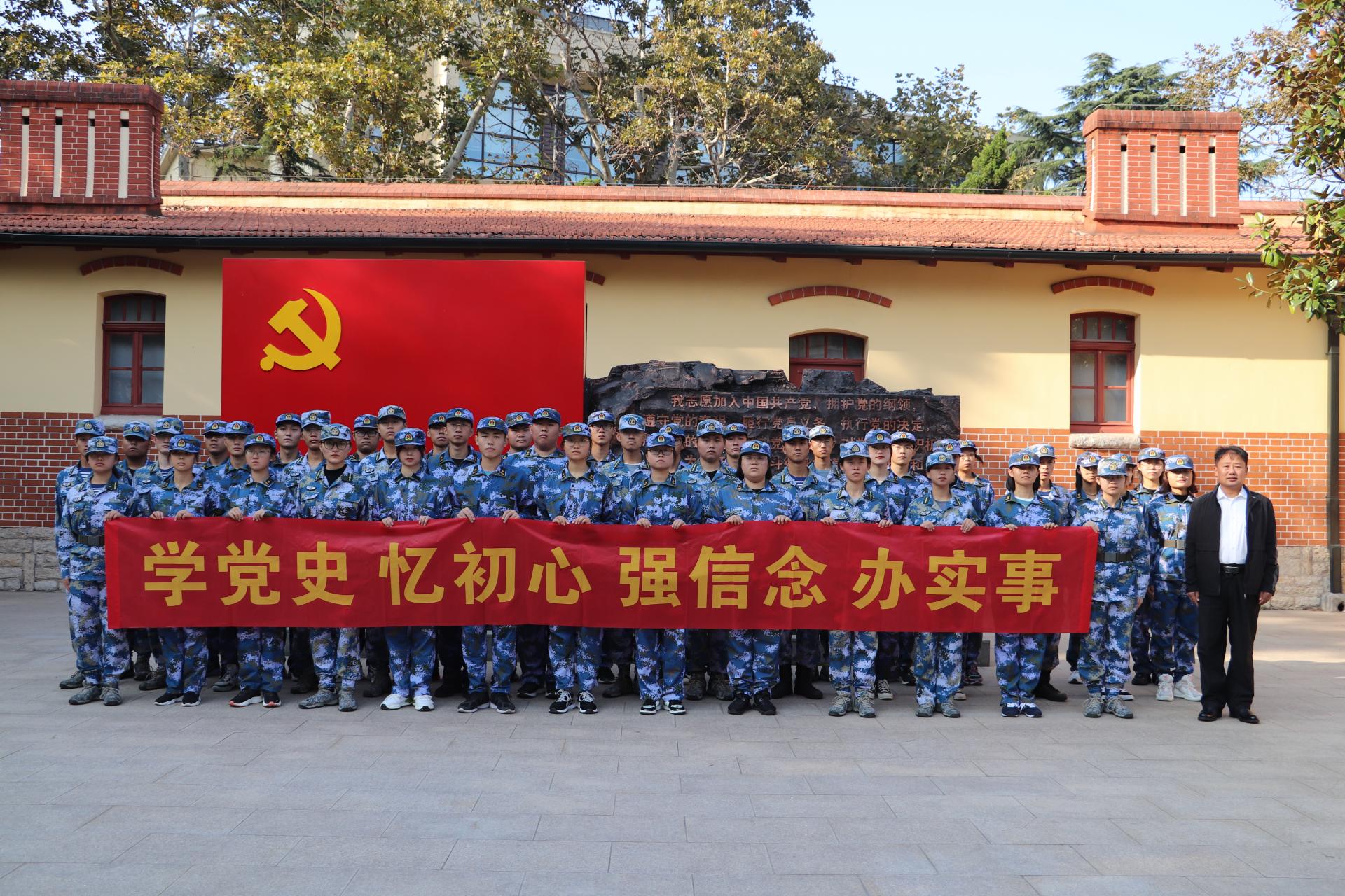 带队老师讲:中国共产党人为了国家和民族,为了和平和解放,甘愿奉献生命,用实际行动书写了值得代代传颂的红色故事。在我们党百年华诞之际,到党史纪念馆进行现场学习教育,让我们对中国共产党有了更加深刻的认识。同学们要认真学好党史,从中汲取奋发前进的智慧和力量,做到学党史、悟思想、办实事,对学校学生军训后备教官高标准严要求。