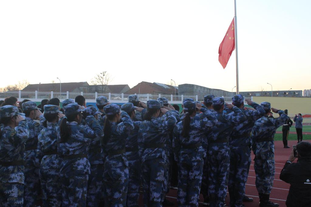 上午7点整,纪念活动在东山操场开始。现场国旗护卫队举行庄重的公祭日升旗、降半旗仪式。晨光熹微,五星红旗在庄严的国歌声中升向旗杆顶端,随后缓缓降下,降半旗致哀。教官团、军协和各学院学生代表脱帽,在警报声中默哀一分钟,缅怀逝者,寄托哀思。