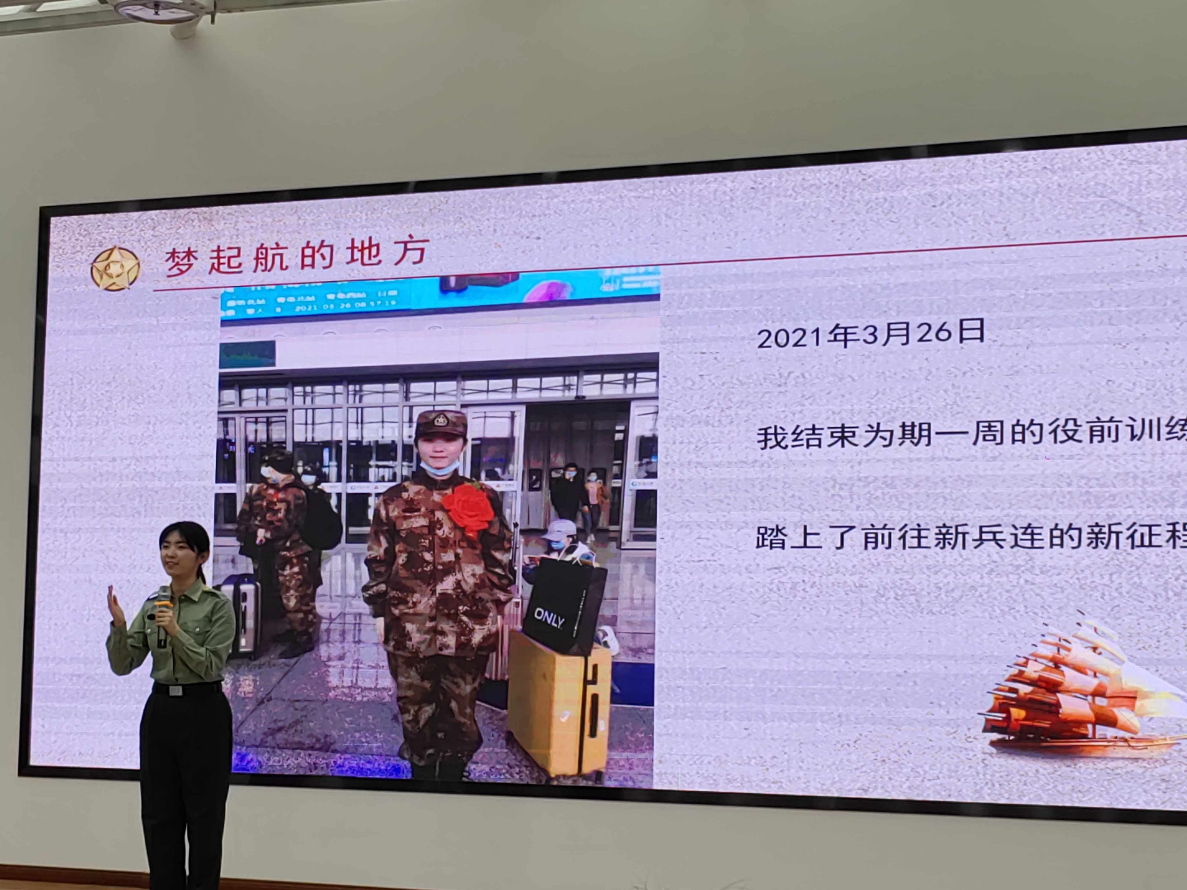 “少年心事当拿云,谁念幽寒坐呜呃”,参军入伍是梦想,更是她的人生理想。她的父亲曾服役于南海舰队,幼时的她经常穿上父亲洁白的军装,在镜子前敬起一个个稚嫩的军礼。浪花舒展,赤忱永在;心之所向,行之所往。2020年9月,她第一次参加征兵体检,却因视力问题与梦想失之交臂。但是她知道,能克服的困难就不能阻挡前进的脚步。2021年,她再次为理想出征,最终捧回了一张红彤彤的入伍通知书。青春儿郎正当年,甘将她血沃中华,那一刻她更加坚信自己的无悔选择。