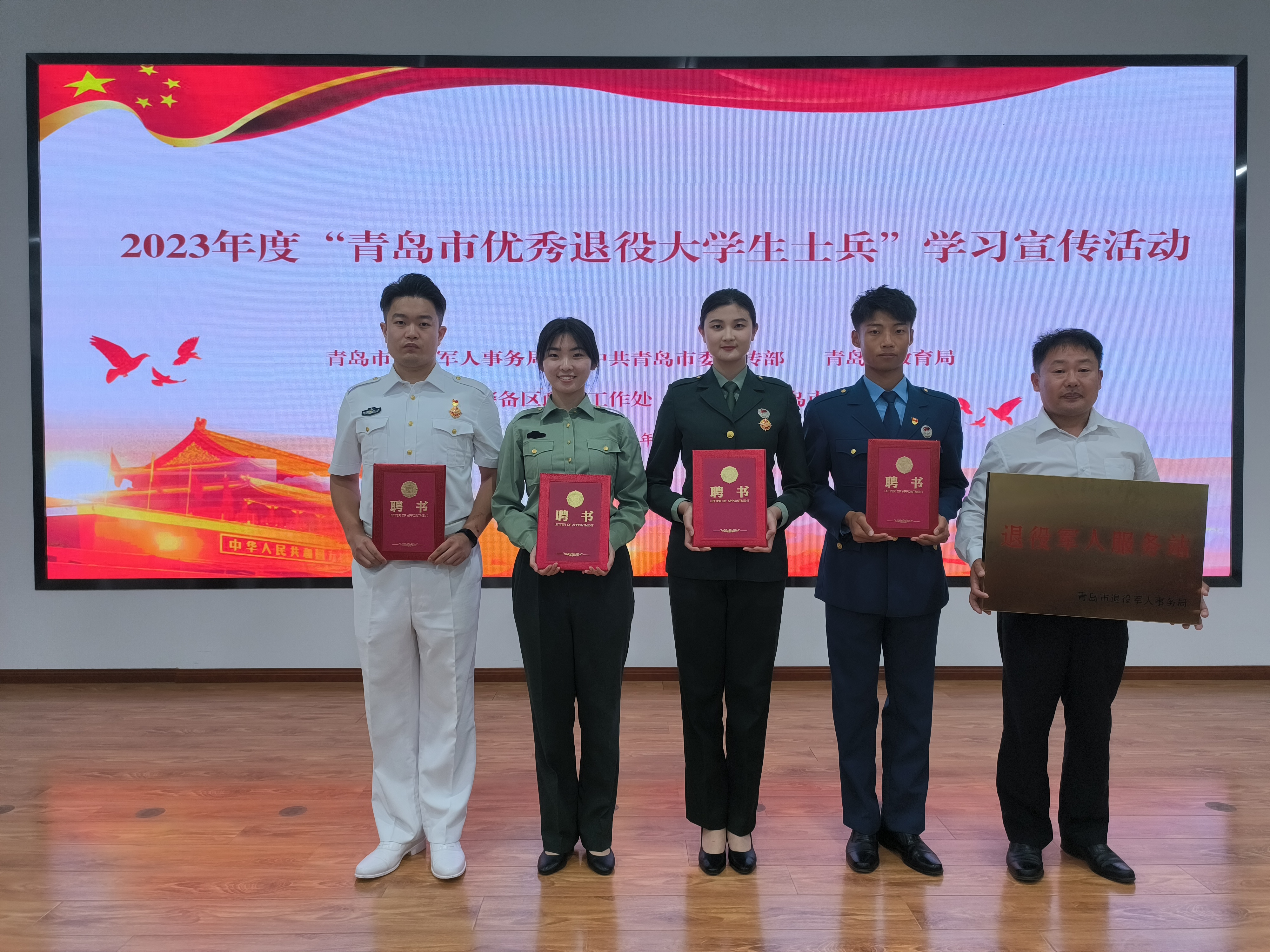 为深入学习贯彻党的二十大精神和习近平总书记关于退役军人工作重要论述,结合学习贯彻习近平新时代中国特色社会主义思想主题教育,根据青岛市开展2023年度“青岛市优秀退役大学生士兵”学习宣传活动,充分发挥先进典型示范引领作用,大力营造关心国防、尊崇军人浓厚氛围,实现“让军人成为全社会尊崇的职业”使命。学校在5月初开始组织退役大学生评选,经过校区、学院组织初选推荐,全校共有22名优秀退役大学生申报,学校对申报材料进行严格审核把关,最终推荐传媒学院陈姝均、法学院王岚玥、体育学院聂天一、高密校区李王海威、经管学院袁益吉等5名同学参与青岛市优秀退役大学生士兵评选,经青岛市初审,前4名同学进入复审答辩,进入复审人员均被聘为青岛市退役大学生士兵宣讲员,伟德官网是进入复审环节最多的学校。会上,青岛市退役军人事务局还对进入复审的高校进行了退役军人服务站的授牌。