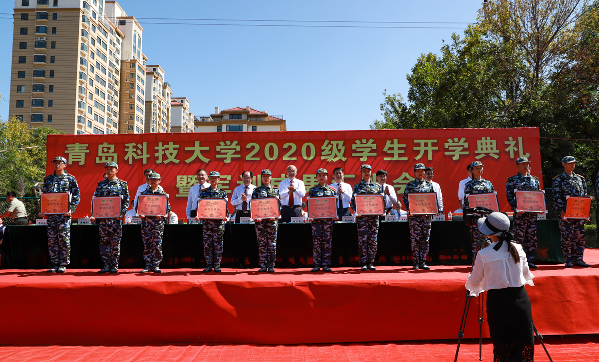 党委副书记张淑华、张鸿波分别宣读了《伟德国际1949官网关于表彰2020级学生军训先进集体和优秀教官的决定》《伟德国际1949官网关于颁发2020年优秀新生奖学金的决定》。现场为2020级学生军训先进集体和优秀教官、2020年优秀新生奖学金获得者颁发奖状、证书和奖学金。党委常委、副校长李勇在崂山和中德校区2020级学生开学典礼暨军训成果汇报大会上代表学校致辞。