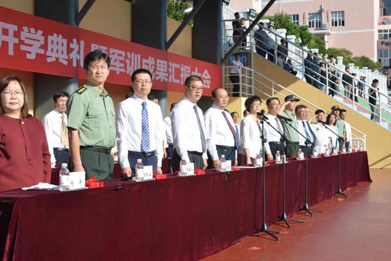 开学典礼暨军训成果汇报大会在庄严的国歌声中开幕。