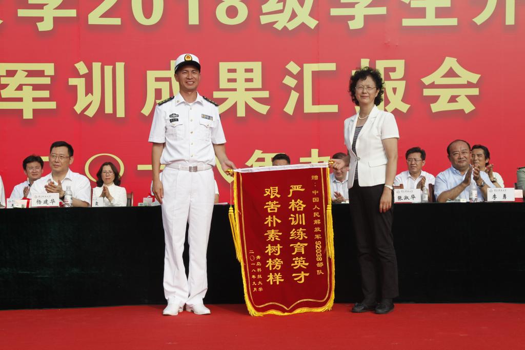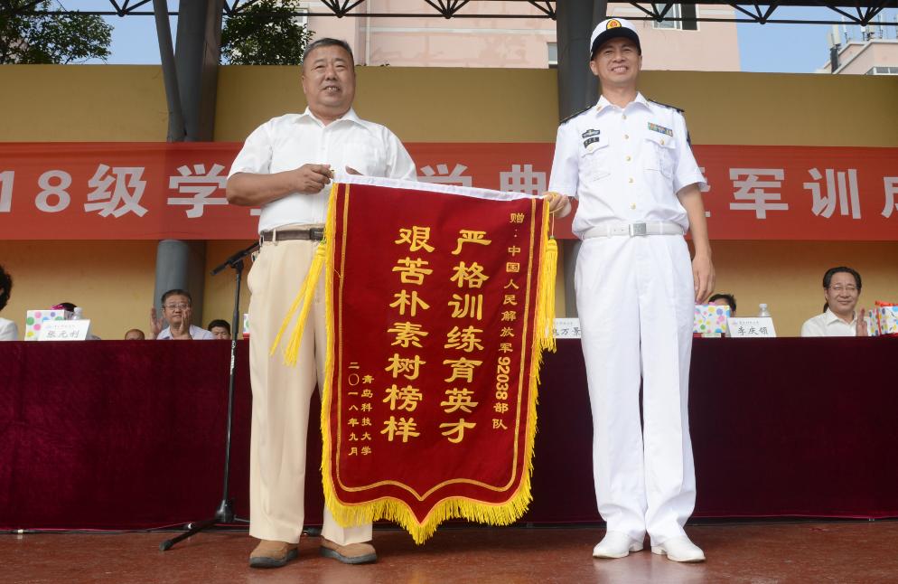 党委副书记张元利、副校长张淑华代表学校向92038部队赠送锦旗,副校长李勇在典礼上宣读了《伟德国际1949官网关于表彰2018级学生军训先进集体和优秀教官的决定》《伟德国际1949官网关于颁发2018年优秀新生奖学金的决定》。获奖的军训先进营、内务先进营、军训先进连、优秀教官代表,以及优秀政治教导员上台领奖。53名新生领取了新生奖学金,其中普通本科生29人每人奖励5000元,中德合作办学项目23人每人奖励30000元、中法合作办学项目1人奖励20000元。