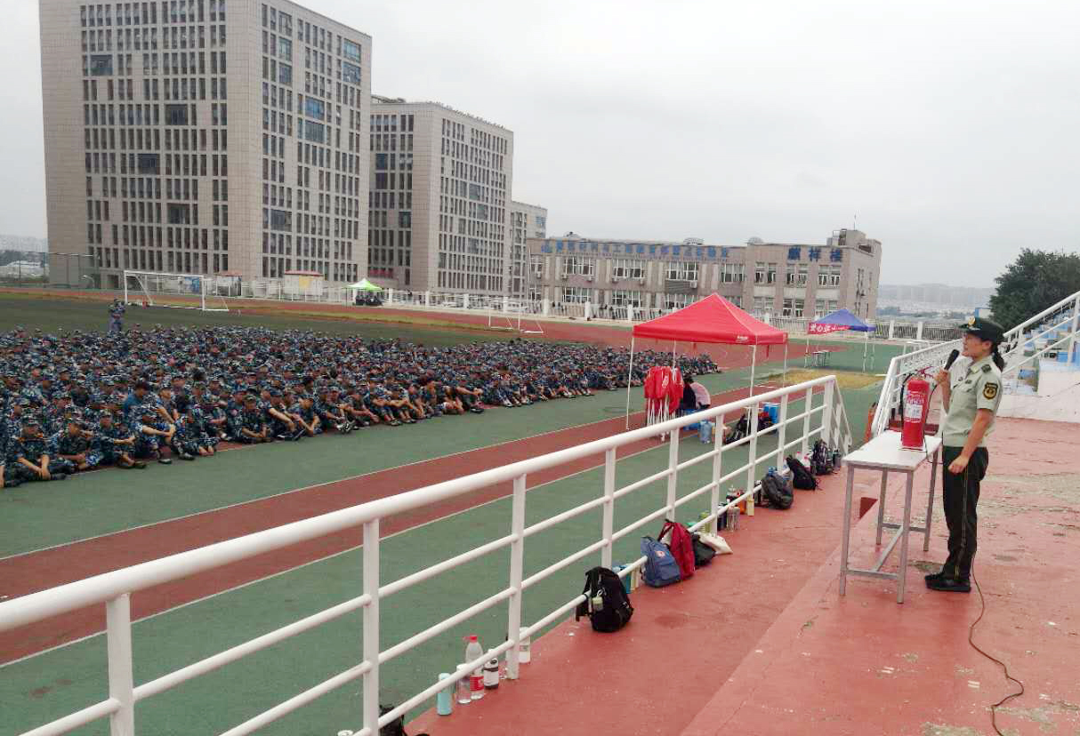 为加强新生消防安全教育工作,根据中共青岛市委教育工作委员会、青岛市公安局等四部门联合下发《关于开展2018年度消防知识“进军训”活动的通知》(青公发〔2018〕33号)文件要求,学校保卫处与学生处联合分别在9月13日、19日下午邀请崂山、市北消防大队工作人员在崂山、四方两校区操场开展消防安全教育。