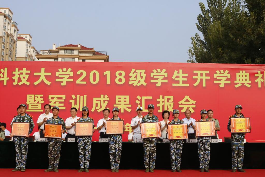 马连湘说,历经68年风雨洗礼,一代又一代科大人薪火相传,弦歌不辍,推动学校事业发展不断谱写新篇章。一大批以“立德树人”为己任的老师们,始终传承“团结自强、艰苦奋斗、敢为人先、开拓创新”的科大精神,践行“吃苦耐劳、坚韧不拔,朴实无华、甘于奉献,同心协力、勇承重载”的橡胶品格,贯彻“有精神、有文化、有责任、有活力、有特色”的五有理念,为科大教育教学和科研事业作出了突出贡献,昭示着科大丰厚的家风底蕴和独有的文化内涵。高密校区自2009年7月成立以来,在高密市委、市政府的大力支持下,已经发展成为校市合作、异地办学的典范。当前高密市委市政府正与学校紧密携手共建大数据学院,学校将积极融入青潍一体化建设和半岛蓝色经济区国家战略,努力建设“环境优美、设施完备、校风朴实、产学结合、质量立校、万人大学、校地一家、奋发有为”的特色校区。马连湘表示,回顾14天的军训,同学们在教官的严格指导下,发扬不怕苦、不怕累的大无畏精神,认真落实每一项训练任务,不仅强健了体魄、磨练了意志,还培养了团队意识、增强了国防观念。刚才的汇报演示,你们团结一致、精神抖擞、意气风发,充分展示了顽强拼搏、刻苦训练的成果,体现了昂扬的斗志和良好的精神风貌,向学校交出了第一份优异的答卷。作为校长、师长和学长,马连湘围绕“德、智、体、美、劳”五个方面向全体新生提出五点要求:一是立德修身。希望同学们提高政治站位,认真学习贯彻习近平新时代中国特色社会主义思想,坚定理想信念,坚持家国情怀,立志听党话、跟党走,扎根人民、奉献国家;增强人生定力,学会历史、辩证、独立地思考问题,树立正确的“三观”,坚持正直、善良、诚信等优秀品质,成为有大爱大德大情怀的人。二是睿智博学。希望同学们不忘上大学的初心,科学规划大学生活,处理好课外学习与课堂学习的关系,现实世界与虚拟世界的关系,专业与兴趣的关系;认真学习专业课程,心无旁骛求知问学,培养专业思维,提高专业能力,把基础打牢;不断拓展兴趣爱好,加强素质积累,用好学校各种学习平台和资源,丰富见闻学识。三是健体弘毅。希望同学们树立健康理念,积极参加体育锻炼,努力培养攻坚克难、敢拼会赢的勇气,吃苦耐劳、持之以恒的毅力,敢为人先、争创一流的信心;在竞技竞争中养成团结互助的合作精神,在重视个性发展的同时增强关心集体的团队意识,学会与人相处,善于与人合作,融入集体,取长补短,从中享受乐趣、健全人格、砥砺品质。四是向美而行。希望同学们以开放的心态、探索的勇气,利用好学校便利条件,课余时间结伴而行,多听几场音乐会、多看几场艺术展,让精神和心灵徜徉在艺术的海洋里,提高自己的审美水平和艺术修养。五是习劳自勉。希望同学们自觉弘扬劳动精神,不断强化劳动观念,努力让“勤奋成为习惯、劳动成为需要”;扎实锻炼劳动技能,学会科学劳动、创造性劳动,在求学之路上勤学苦练,在逐梦之路上勤勉务实,在成才之路上踏实奋进,努力实现成功人生、梦想人生、光明人生。