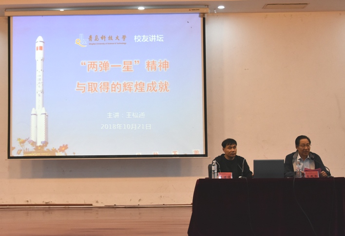 10月21日上午,自动化学院78级校友、酒泉卫星发射中心副司令员王福通少将做客校友讲坛,在崂山校区第二报告厅作题为“‘两弹一星’辉煌成就和伟大精神”的报告。报告会由副校长、校友总会常务副会长韦殿华主持,副校长吕万翔和自动化学院校友、师生代表参加了报告会。