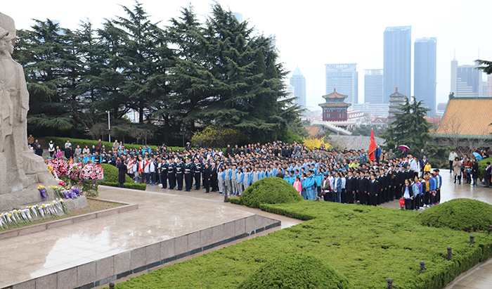 早上7点10分,师生怀着崇敬的心情,排着整齐的队伍分别从四方校区和崂山校区出发,乘坐公交车赶往青岛市烈士陵园。9点整,大家迎着天空飘落下来的细雨,在英雄纪念碑面前,所有人向烈士默哀,紧接着给烈士献花,参观纪念馆。